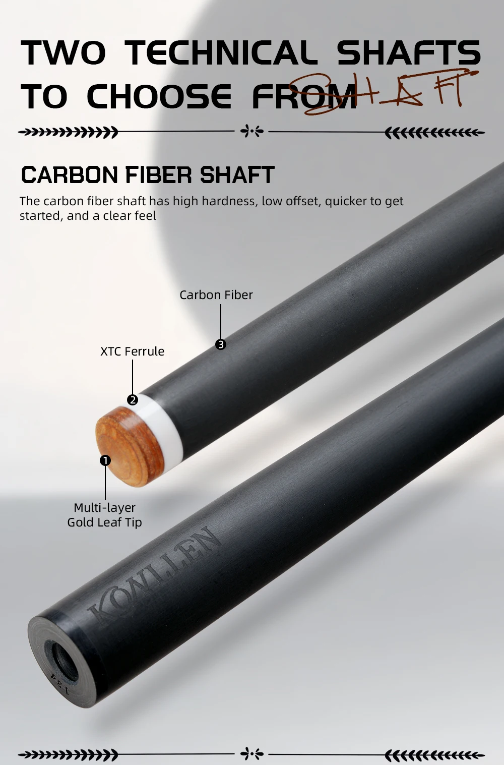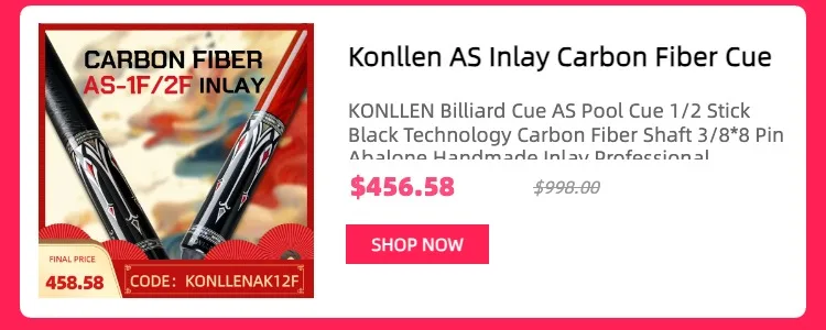 [Professional Carbon Fiber Pool Cue] AXA series is a carbon fiber hand-inlaid pool cue, carefully crafted by KONLLEN for Chinese billiards, inheriting the brand’s classic 2-stage design concept. AXA series pool cues provide players with a smoother and more stable billiard experience, winning the trust and favor of many billiard enthusiasts.