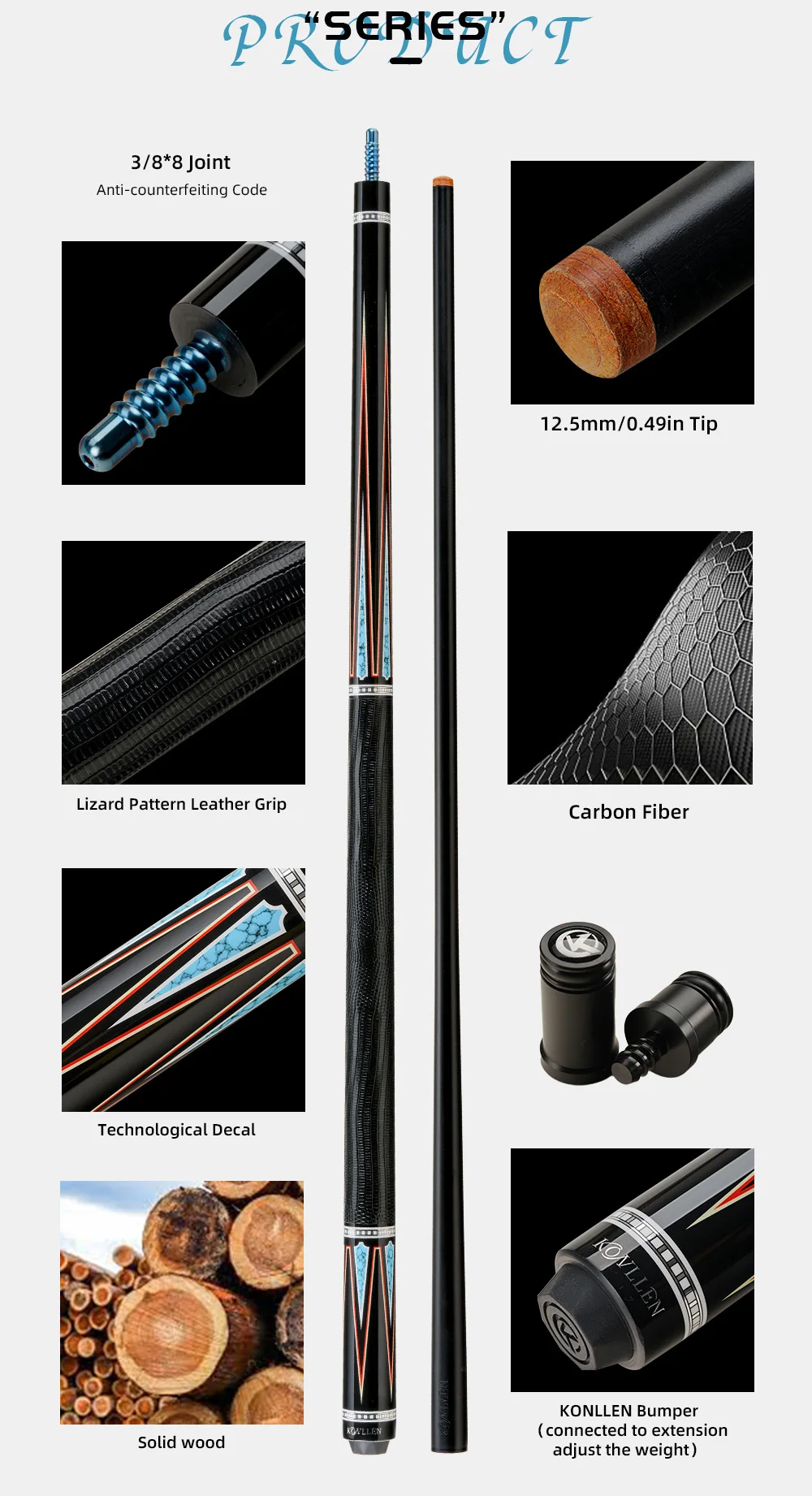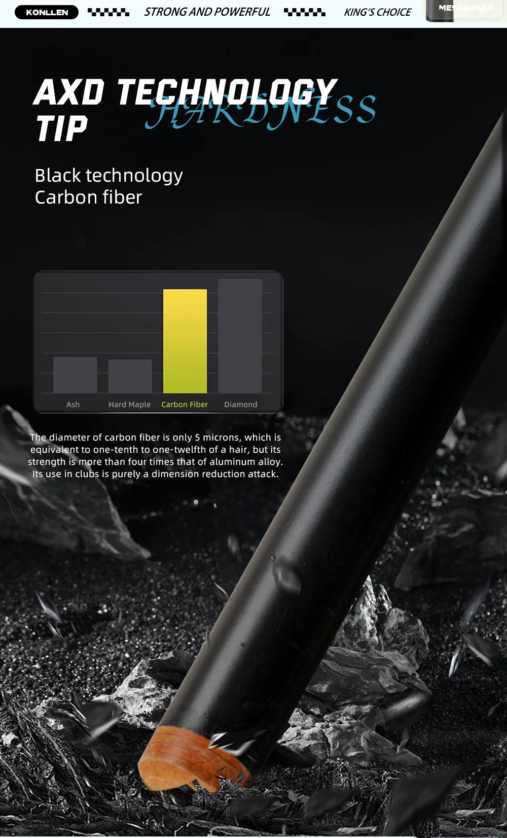 1 review for KONLLEN KL-08F Carbon Fiber Pool Stick with 12.5mm Tip 3*8/8 Joint Pin and Low Deflection for Billiard Cue Stick