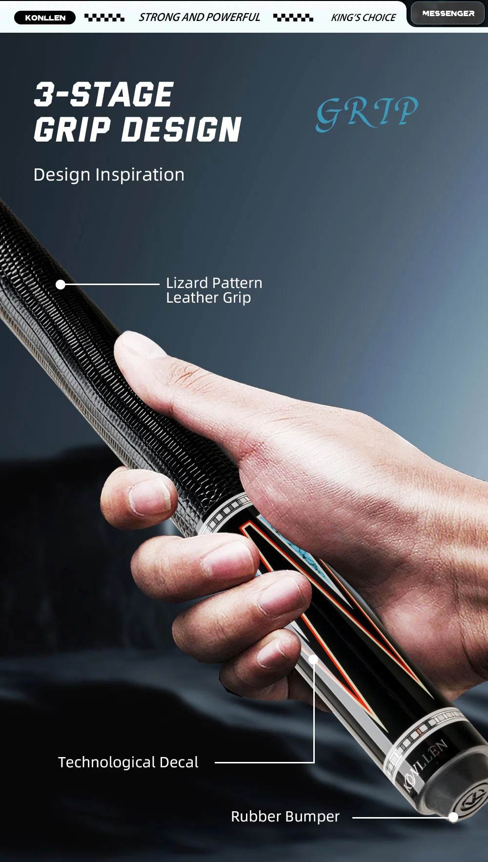 Butt is made of a carbon fiber tube embedded in it to improve stability and not easy to deform.Butt stained with Unique Pattern, black Leather Wrap, sweat-wicking and non-slip.