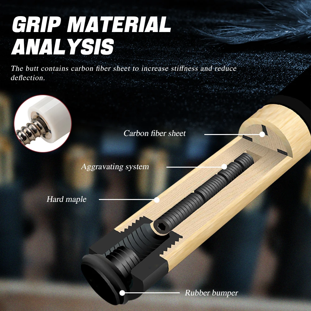 It uses the latest 12.5mm KONLLEN technology tip, which will not fall off after long-term use. The powerful tip can enhance the control of the cue ball and the adhesion of the fine powder.