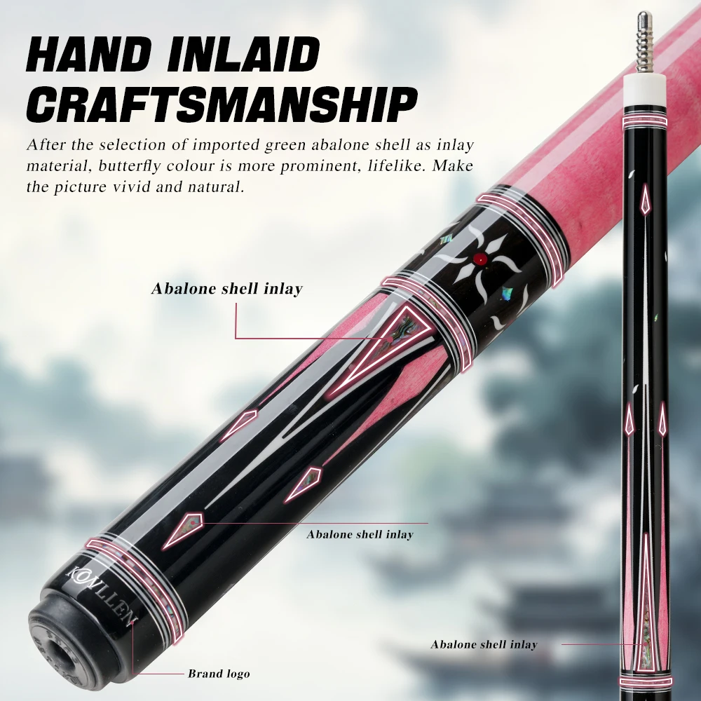 KONLLEN Pool cue Stick with 12.5mm Hardrock Inlay Maple Shaft Contains Carbon Tube 1/2 Split Professional Stick for Billiard Cue