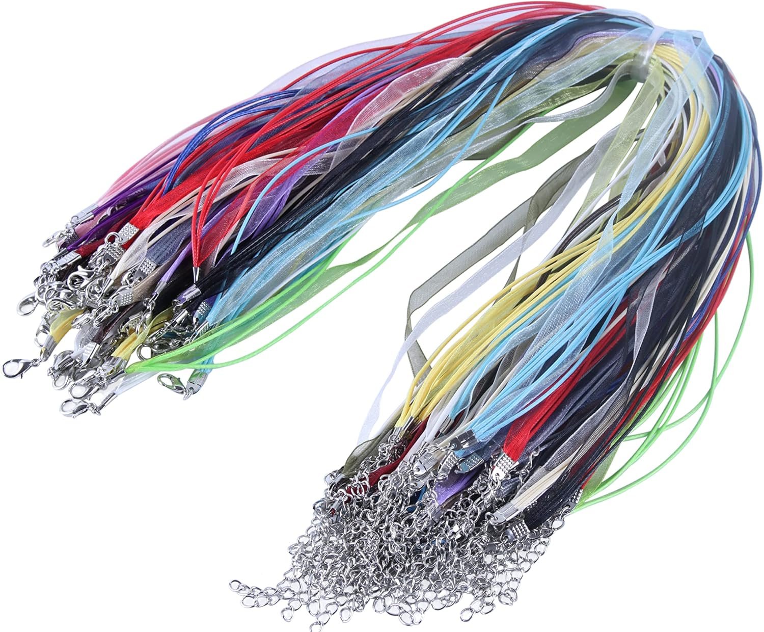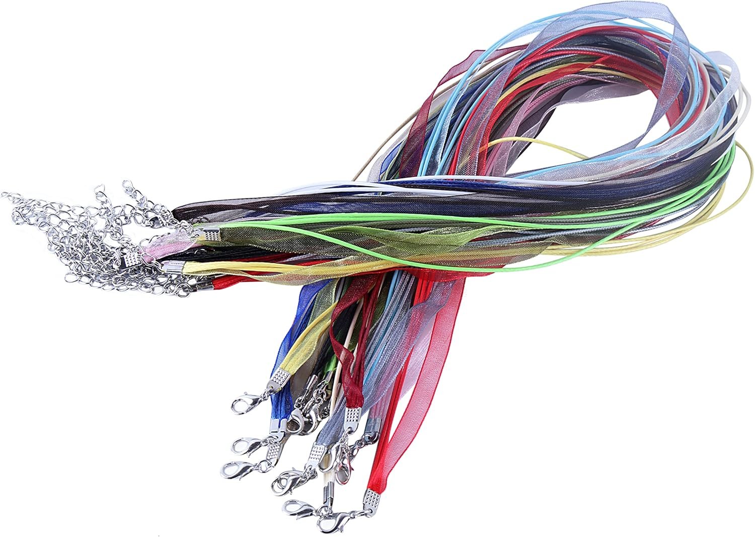 KONMAY Necklace Cord with Clasps for Pendant, 50pcs Mixed 17” Layered Multi-Strands Voile Organza Ribbon Necklace Cord for Jewelry Making