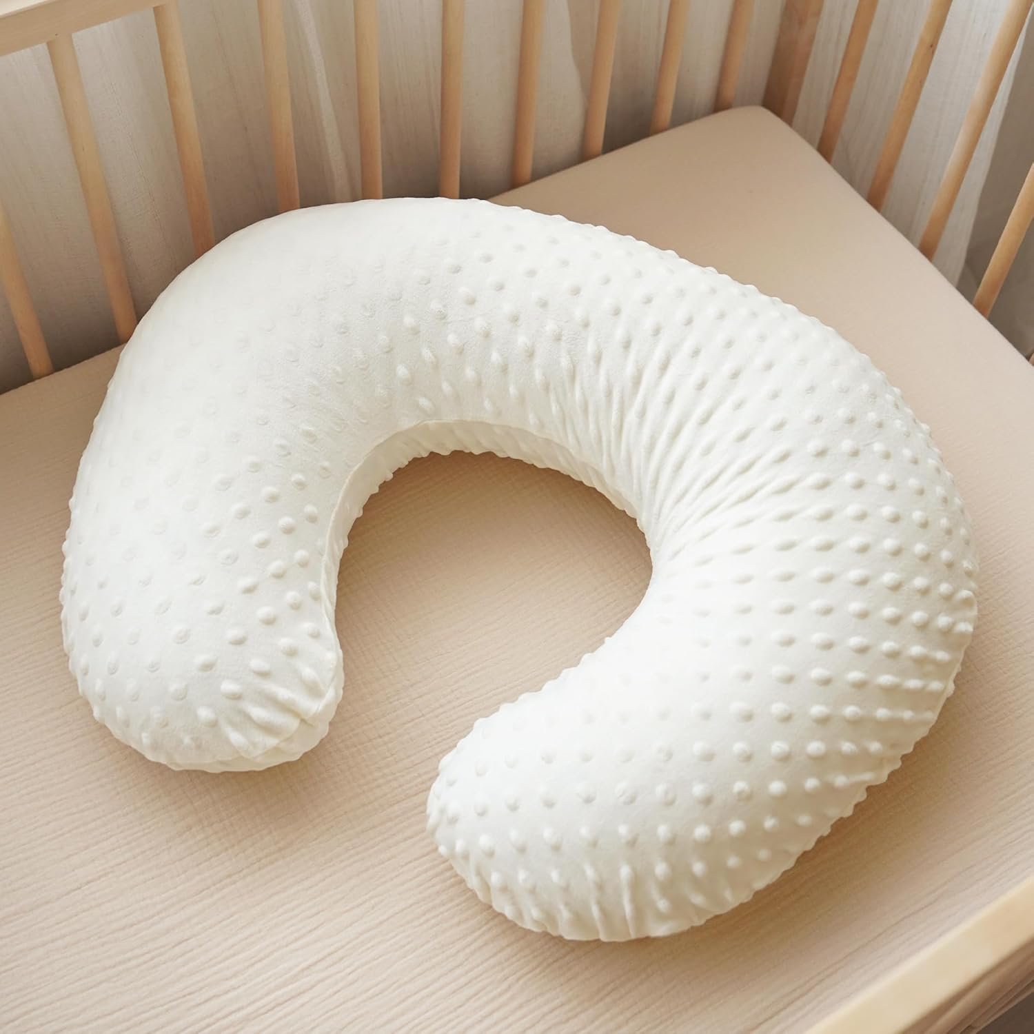 Soft and comfort: Our nursing pillow cover is made from a premium, cozy minky fabric provides a soft and gentle touch, comfort for both mom and baby during feeding. One features minky dot fabric for texture, while the other is smooth, providing different tactile options