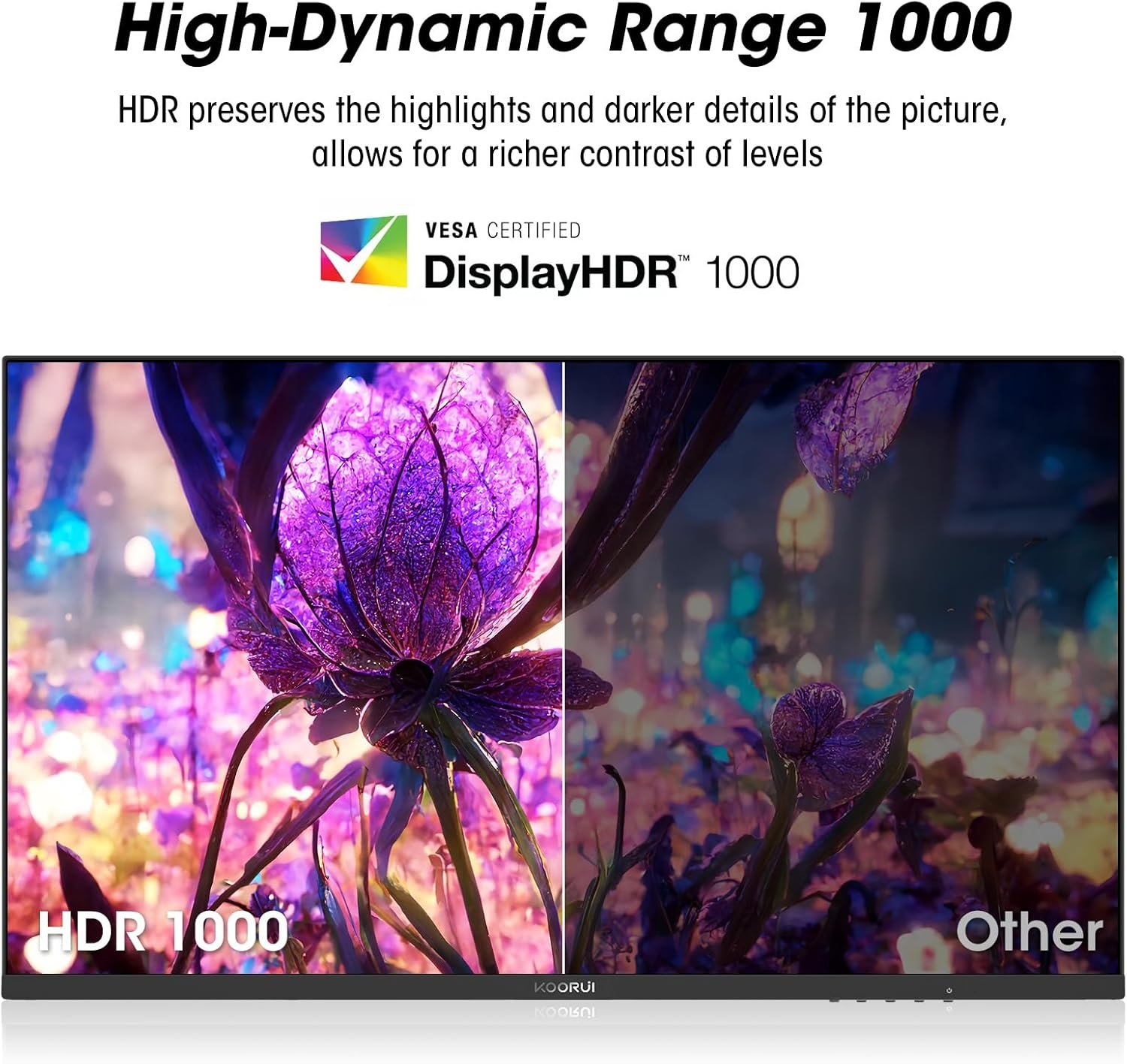KOORUI Monitor, 27” 240Hz Gaming Monitor, Mini-LED Panel- QHD (2560 x 1440) Computer Screen, 1ms, HDR 1000 Display, 100% sRGB, Height Adjustable, HDMI/DisplayPort, White/Grey, GN10