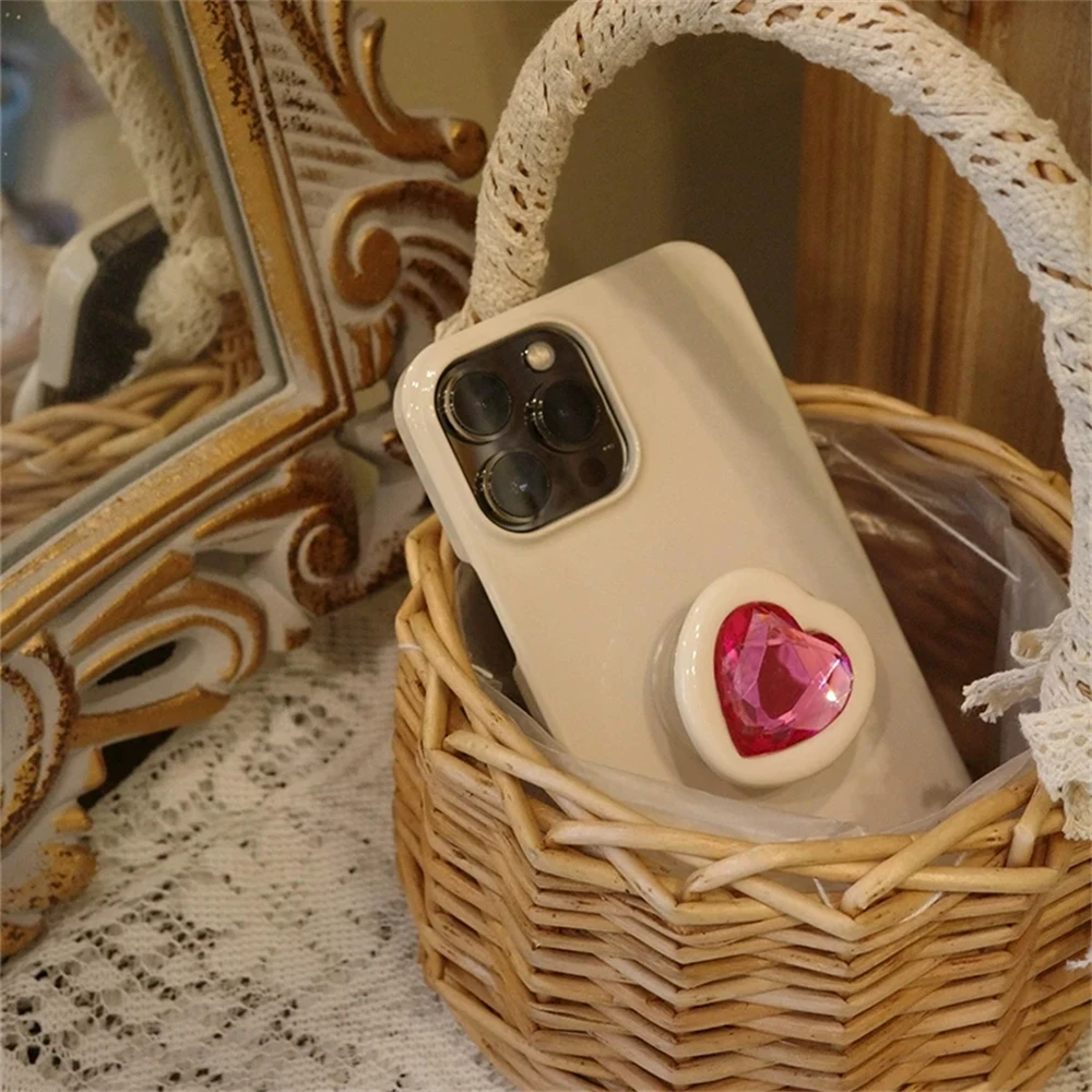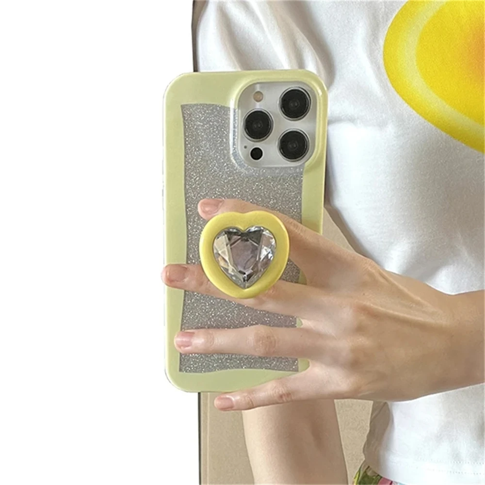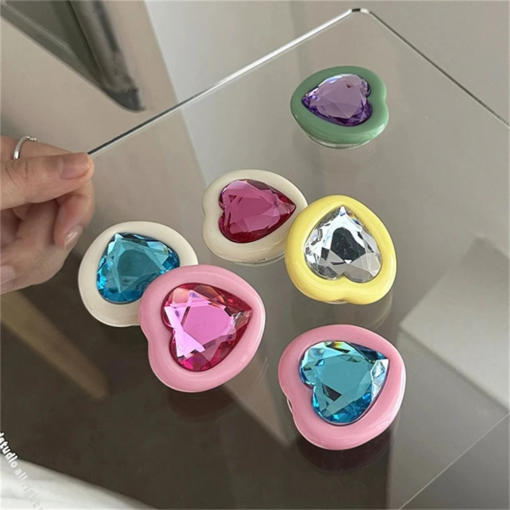 Korean 3D Love Heart Diamond Bracket Griptok Grip Tok Lovely Accessories For iPhone Samsung Luxury Korea Rhinestones Holder Ring