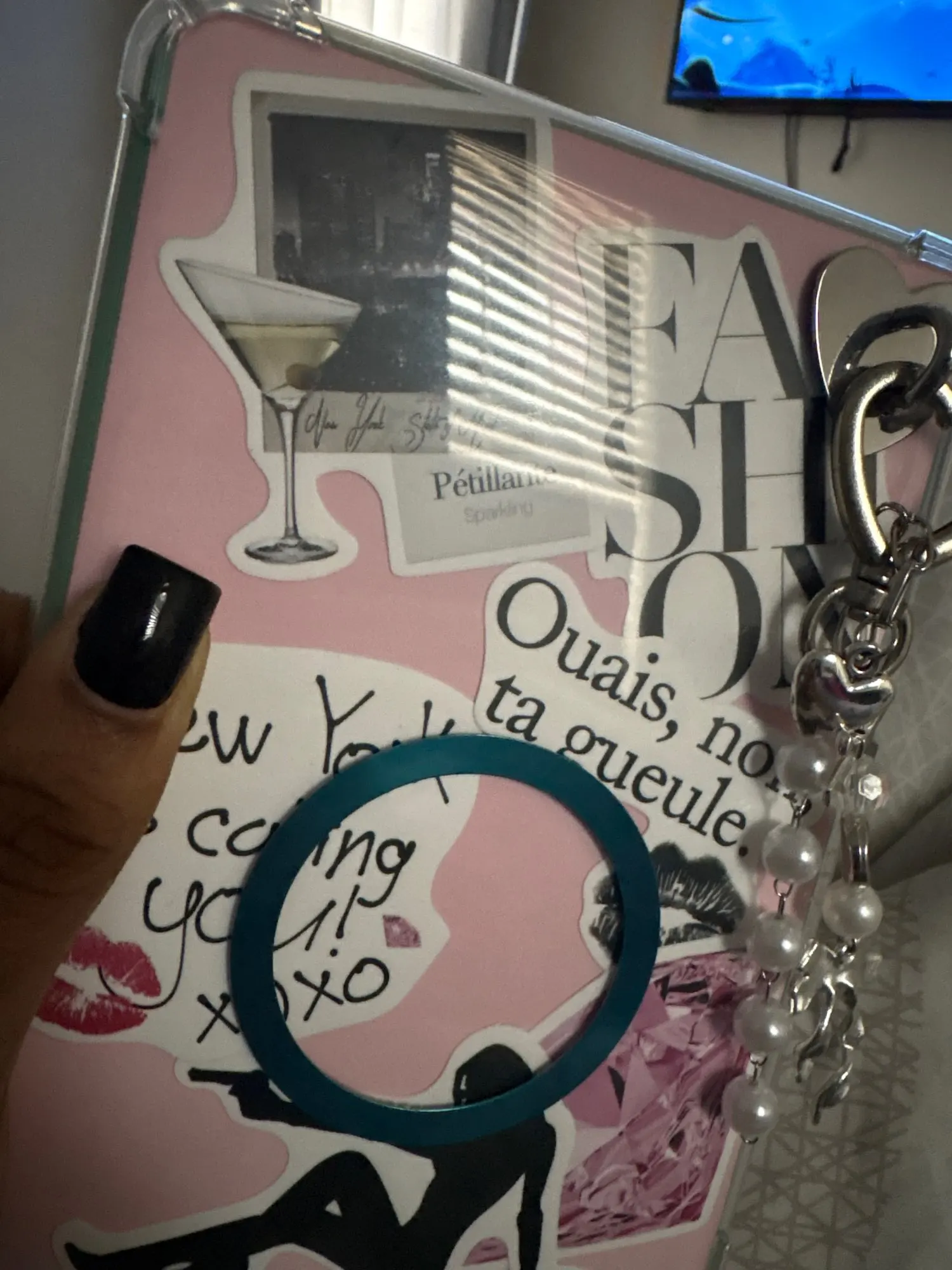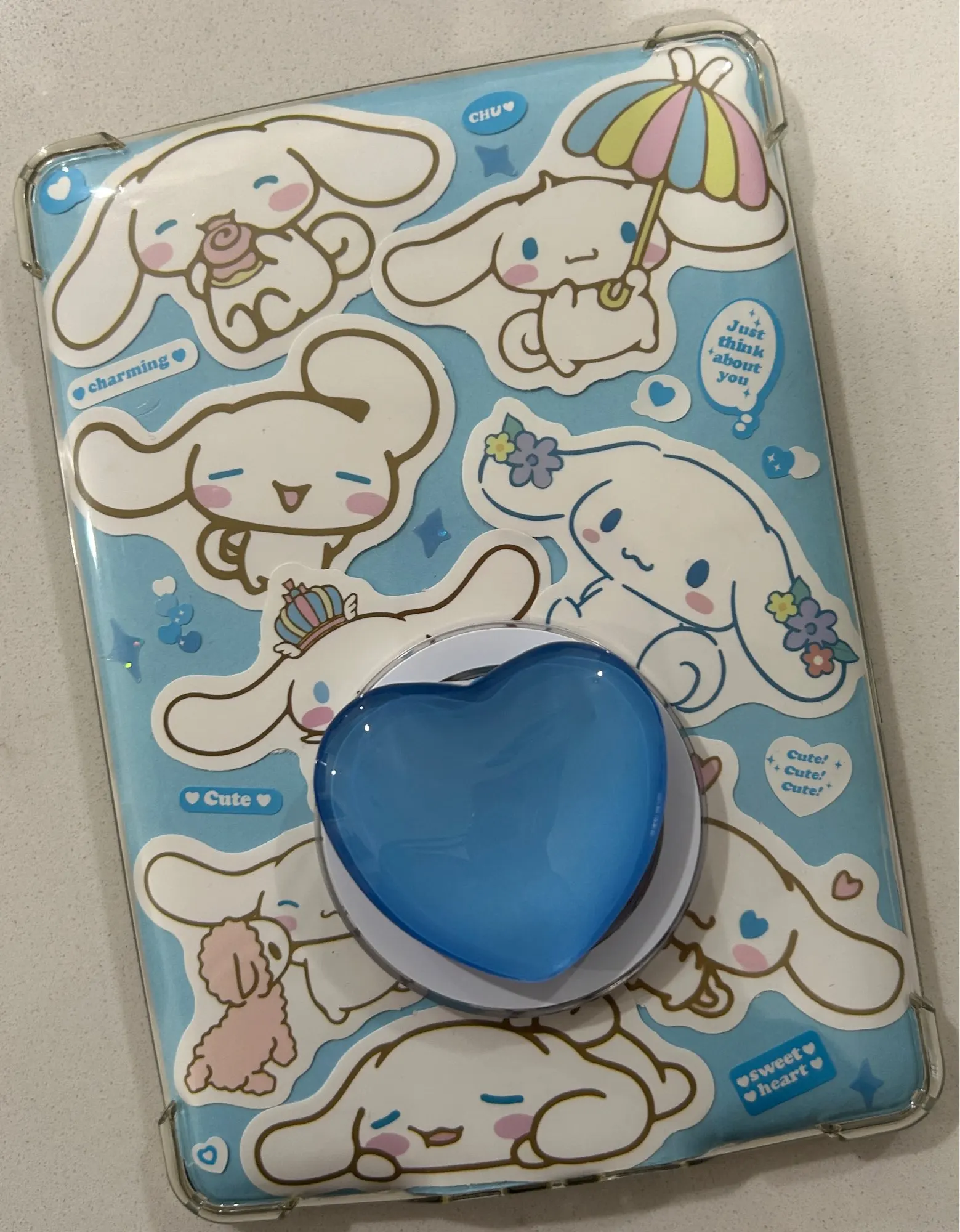 I got the item for my kindle, it’s very cute and comfortable for my fingers while i’m reading. Although, it does not come with the sticky adhesive (the blue ring) behind it i bought that separately. It came very fast and well packaged.