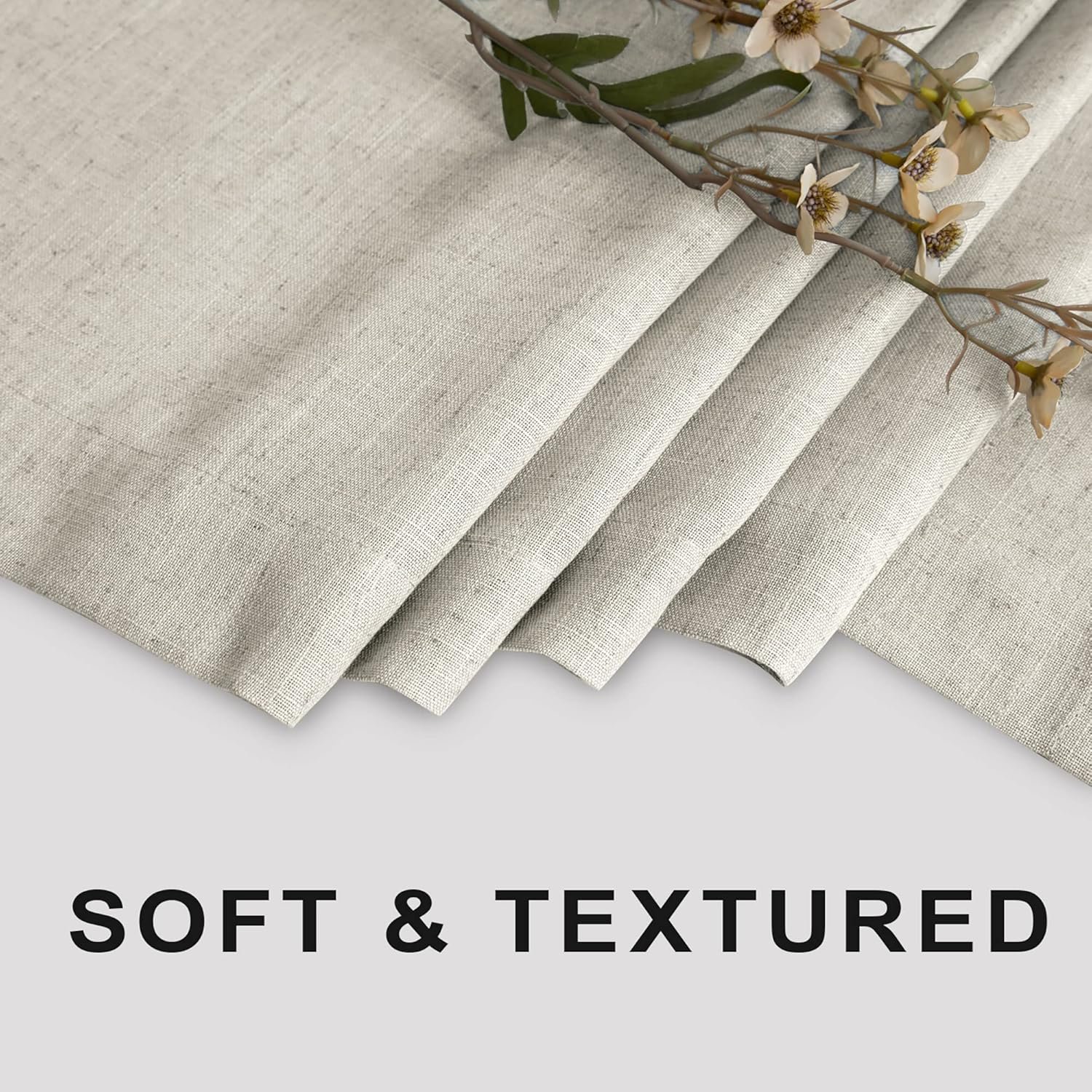 Fabric:Uniquely blended woven of 20% flax linen plus 80% polyester.Unlike primitive 100% linen fabric being too stiff and skin unfriendly,polyester helps on fabric soft,easy wash and wrinkle free but linens still keeping organic speck aesthetic from nature.