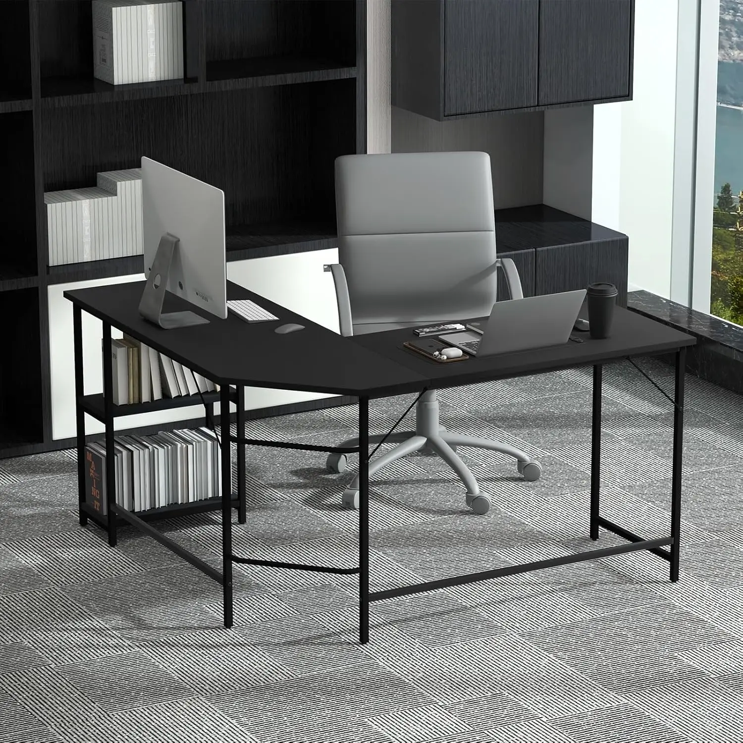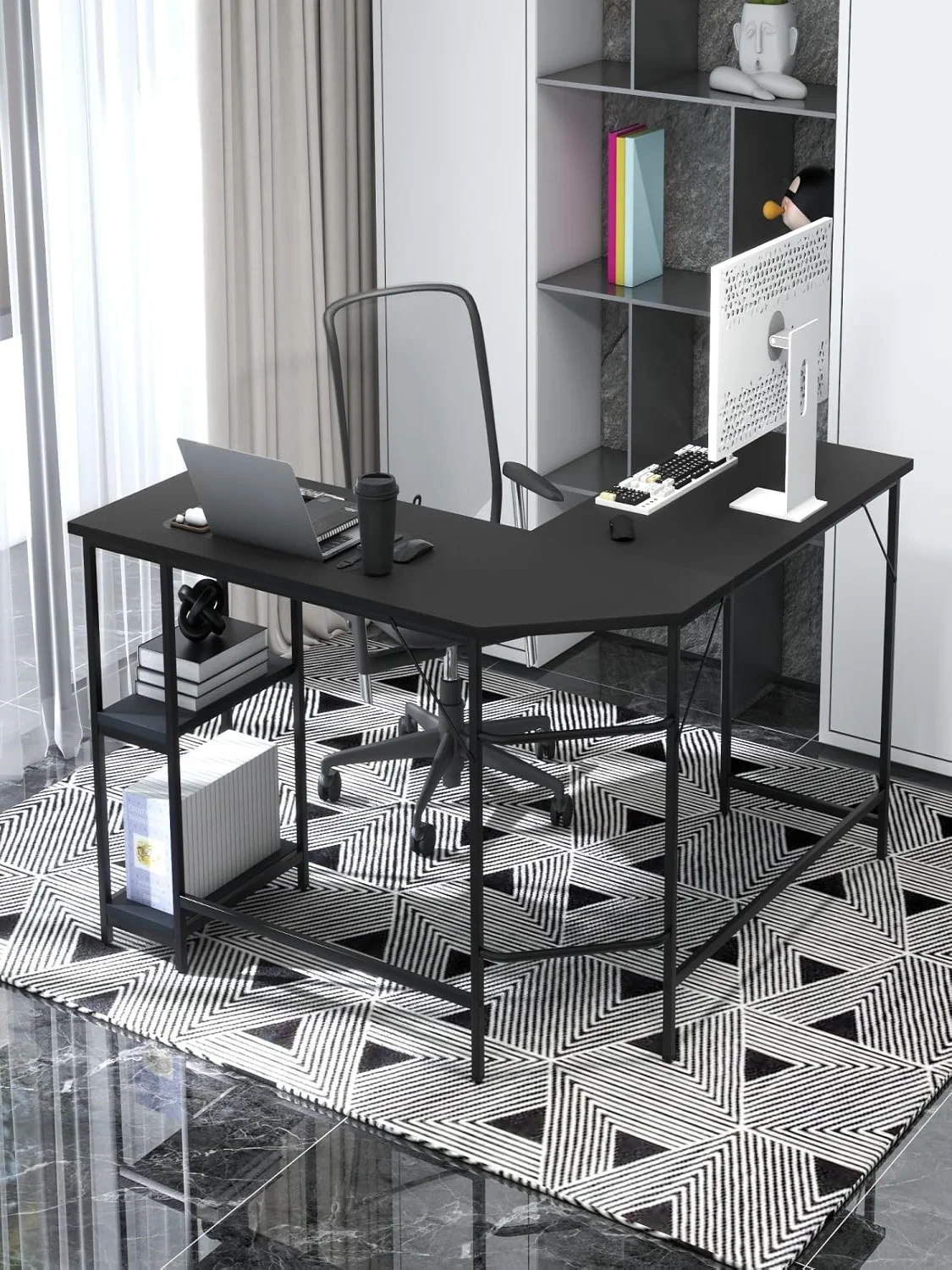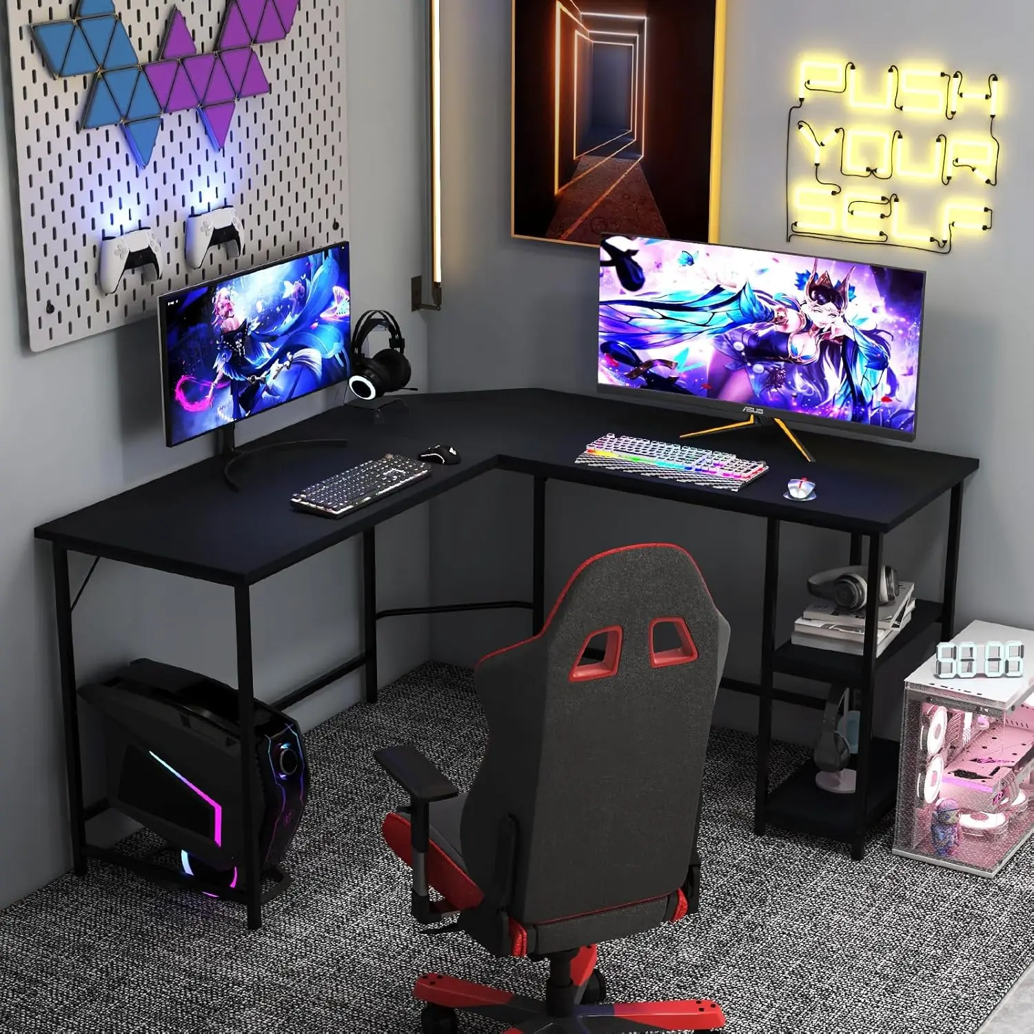 L-Shape Desk Corner Desk with 2 Shelves,Corner Table with Removable Shelf,Gaming Computer Desk,Office Table for Home Office