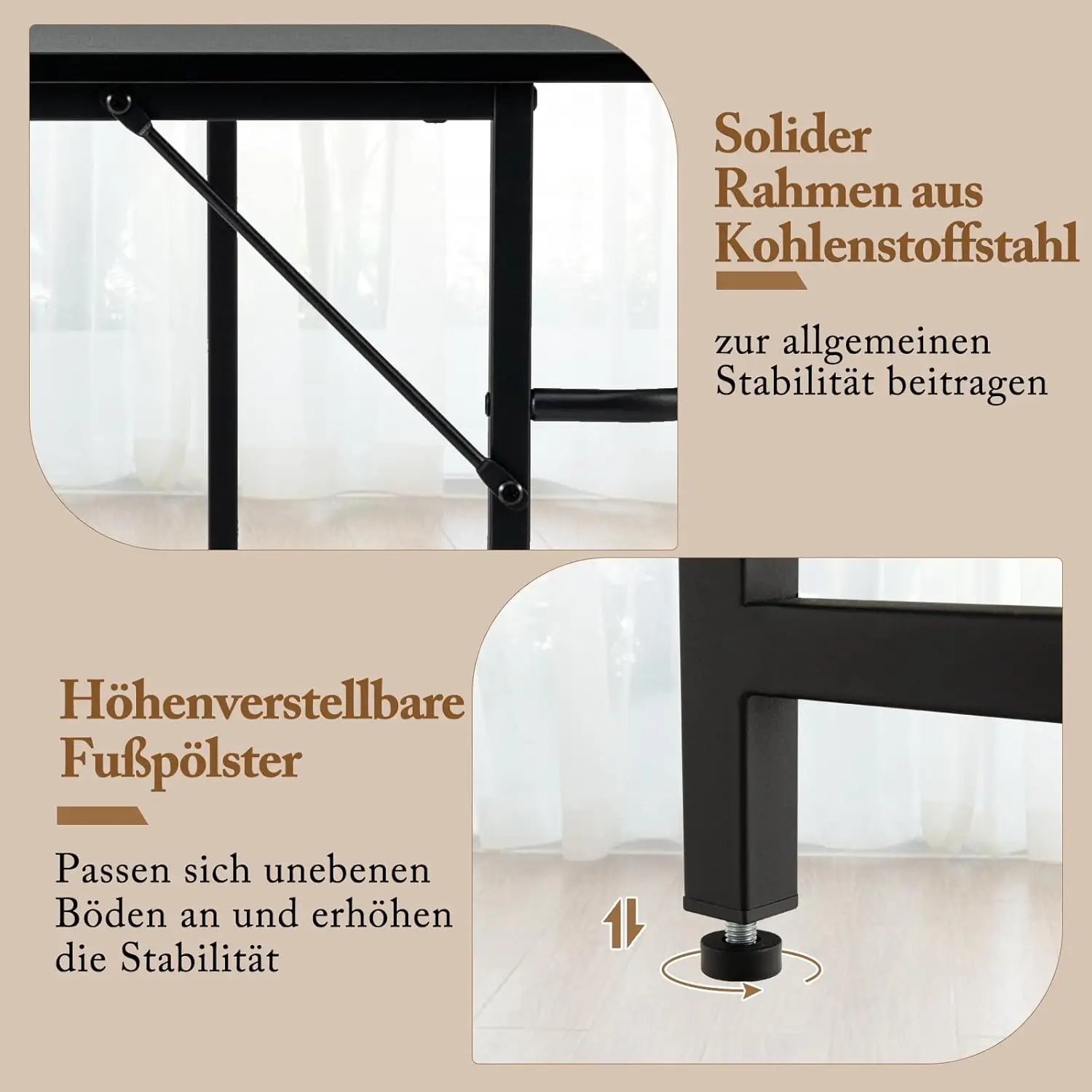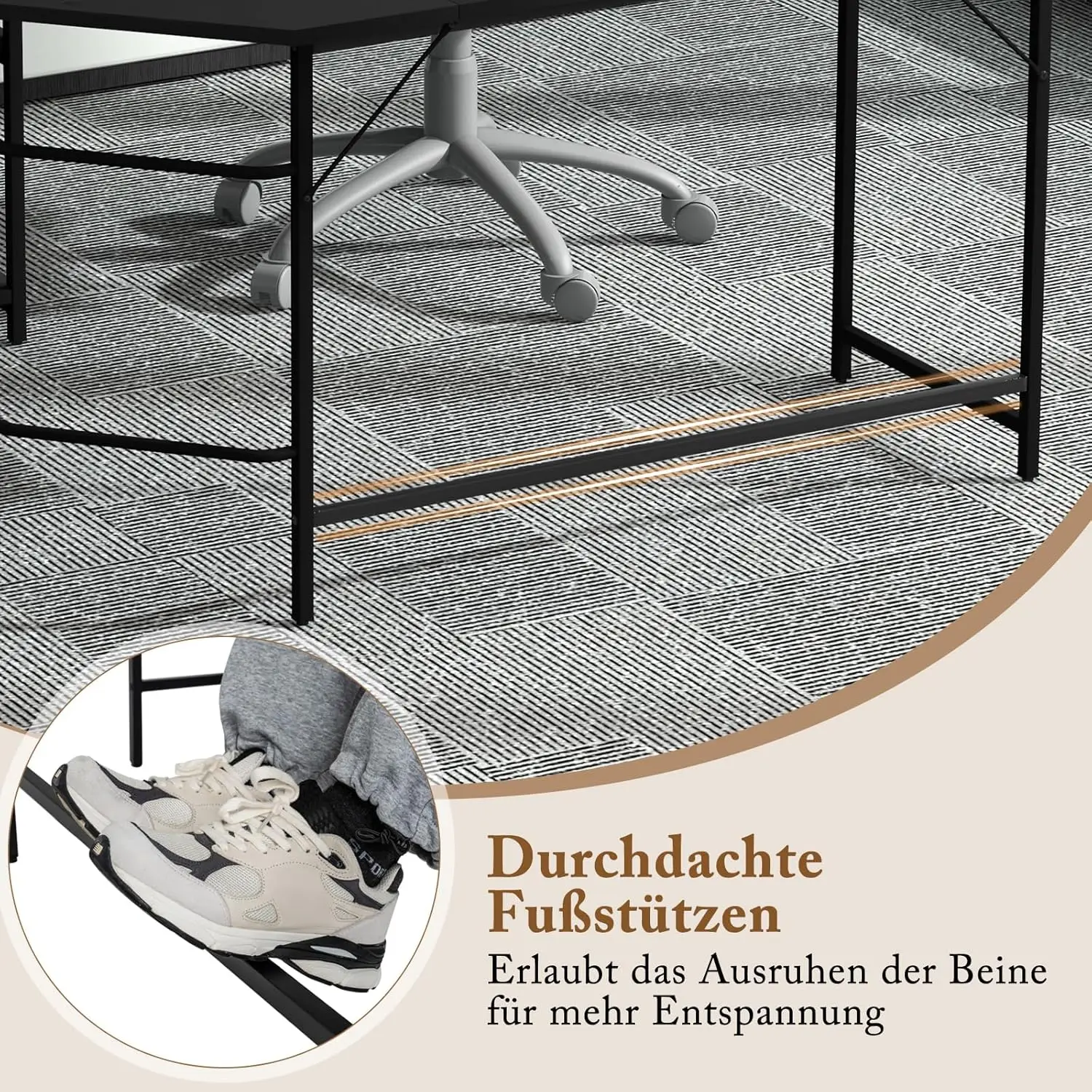 Description: This L-shaped computer desk is a versatile and functional workstation solution. Its wide table top fits easily into any corner and offers enough space for working, studying, crafting and playing. This study desk made of durable metal can carry a large weight and remains stable on uneven floors thanks to its adjustable foot pads. Easily switch between work and leisure by adjusting the layout, and enjoy extra comfort with the desk footrest. Increase your productivity and comfort with this stylish and practical computer desk. Features: As a perfect space saver, its L-shaped tabletop offers more activity area Features a metal frame painted for better rust resistance Left and right sides serve as the main work area for high efficiency Holds your host for easy computer work when you remove the shelf Equipped with the curved footrest for the balance of relaxation. Includes 360° adjustable foot pads to keep the entire stand stable Best working partner in the office, study, living room and more Technical data: Colour: black. Material: metal, wood material. Dimensions of each side: 138 x 50 cm (L x W). Height of tabletop: 75 cm. Dimensions of each shelf: 46 x 24 cm (L x W). Top shelf height: 30 cm. Bottom shelf height: 31 cm. Height of footrest: 21 cm. Maximum load capacity of the tabletop: 160 kg. Maximum load capacity of each shelf: 20 kg. Net weight: 21.5kg Box contents: 1 x L-shaped computer desk. 1 x user manual.