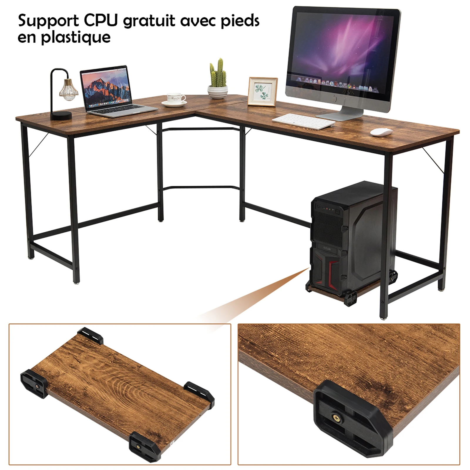 L-shape writing table, corner writing table, gaming computer table PC table computer writing table with CPU stand, office table corner table