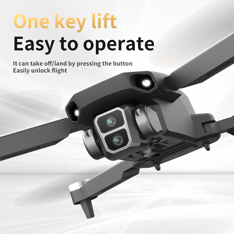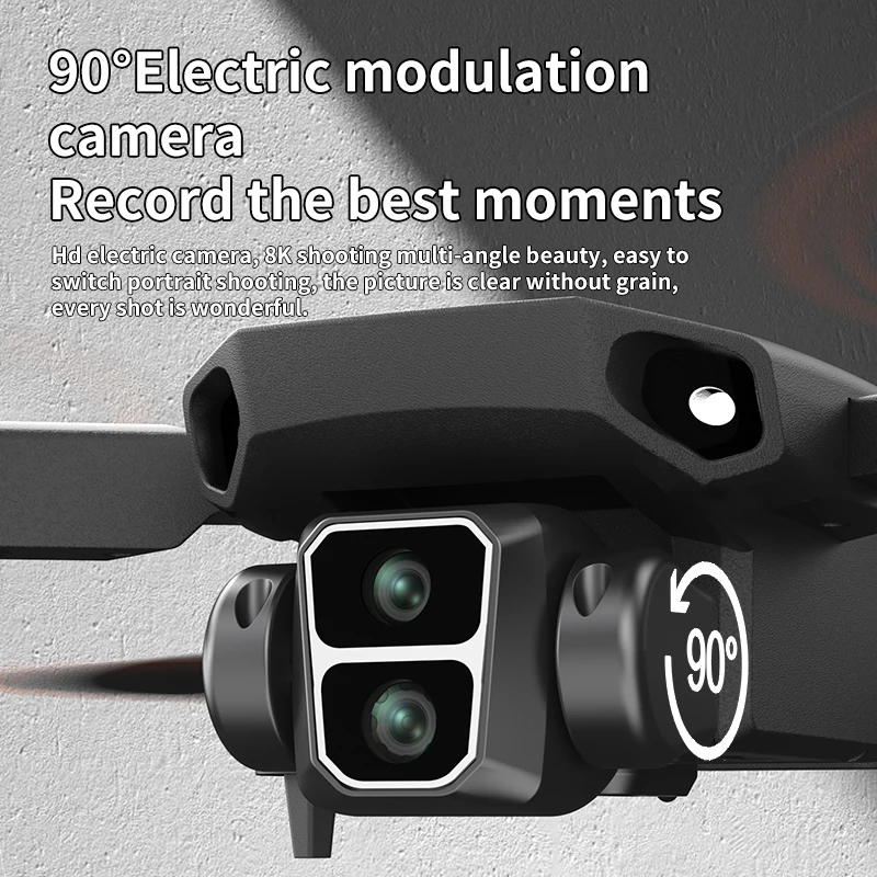 1. The front lens is equipped with wide-angle 8K HD WIFI, the bottom HD lens with optical flow can switch the shooting angle, and the servo gimbal design increases stability.