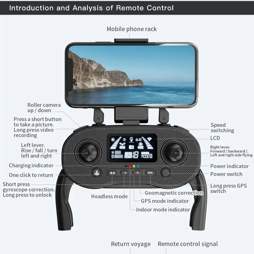 4. GPS Assisted Flight. Provides you with accurate positioning details of your drone.The drone will automatically return to home precisely when its battery is low or the signal is weak when flying out of range, never worrying about losing the drone.