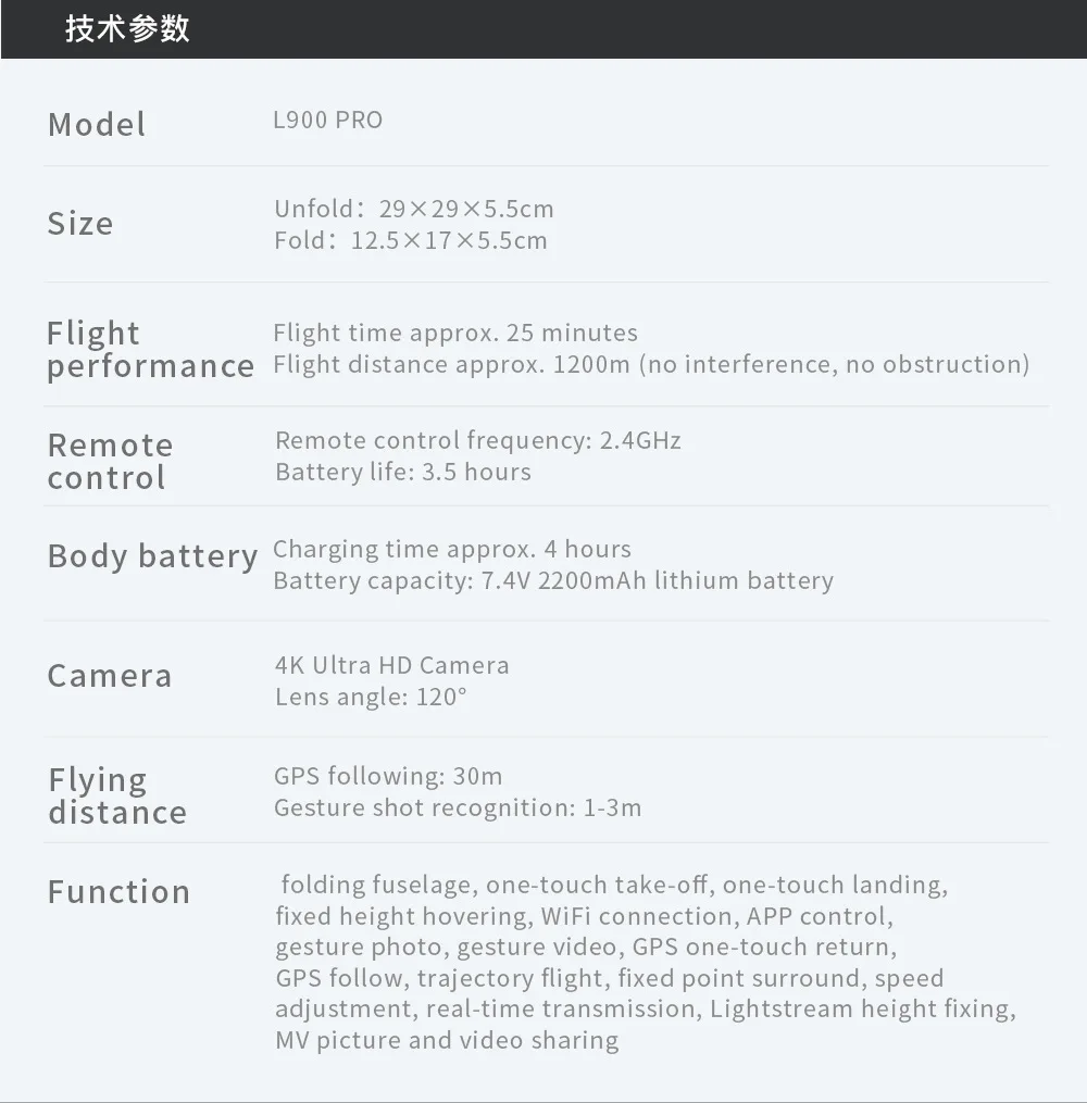 Wifi Image Transmission Range: 300–600m (no interference/obstruction)