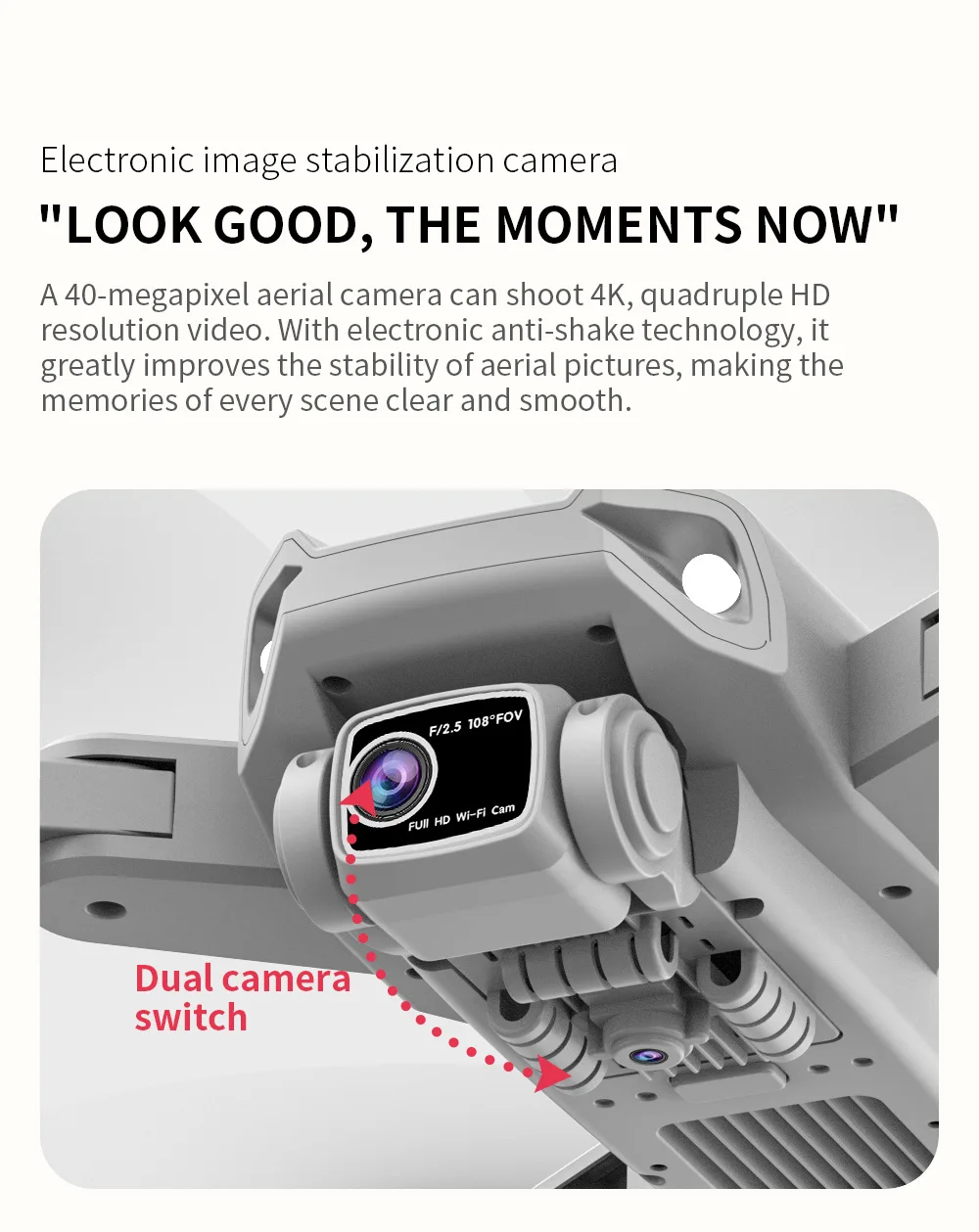 Adjustable Angle Camera: 90° adjustable via transmitter