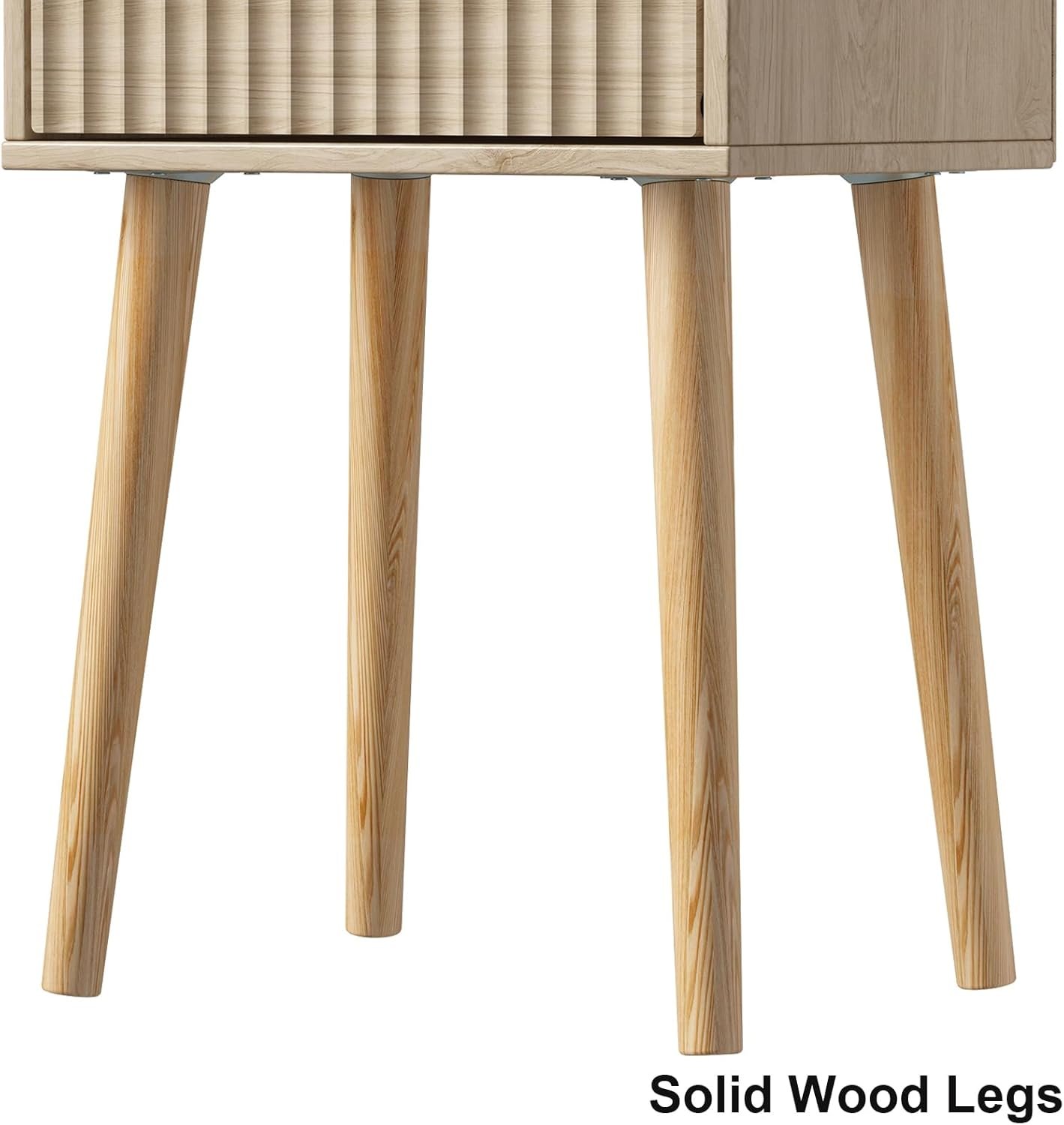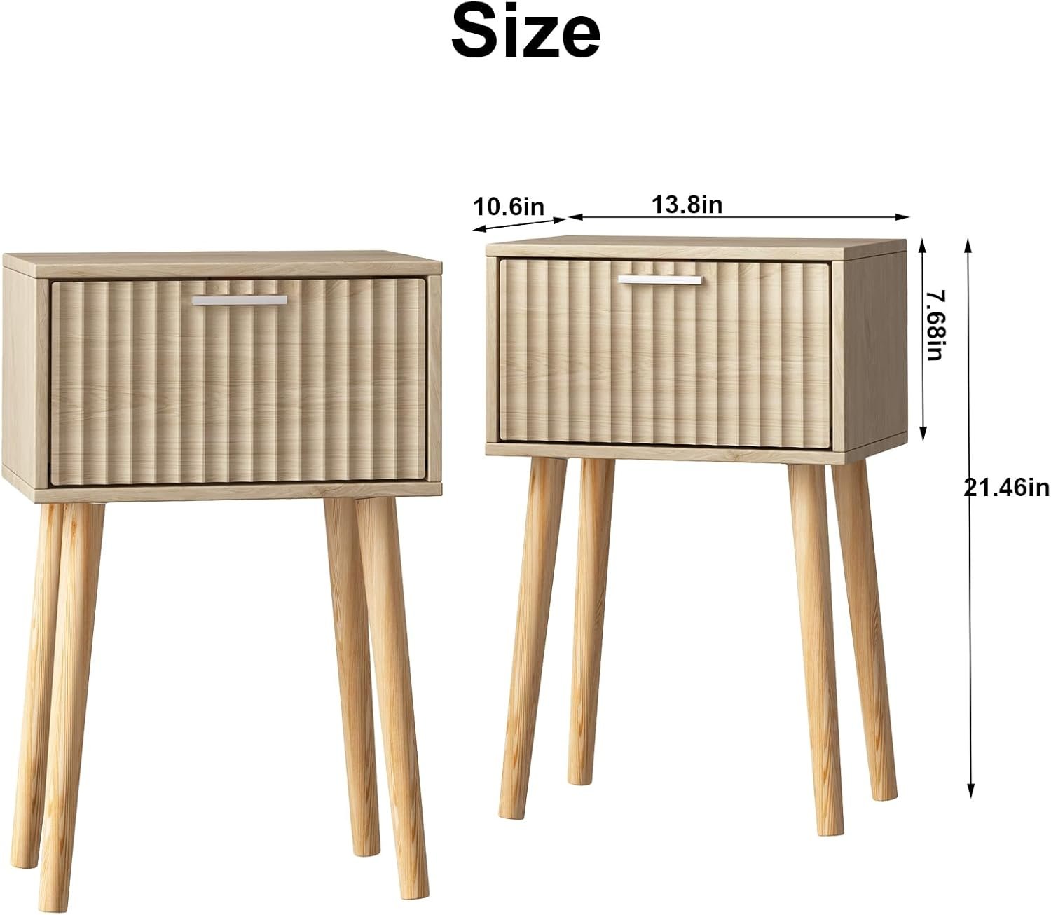 LAATOOREE Nightstands Set of 2, Small Side Table, Bedside Table with Fluted Door, Solid Wood Feet; Modern Mid-Century End Table for Bedroom, Small Space (Natural)