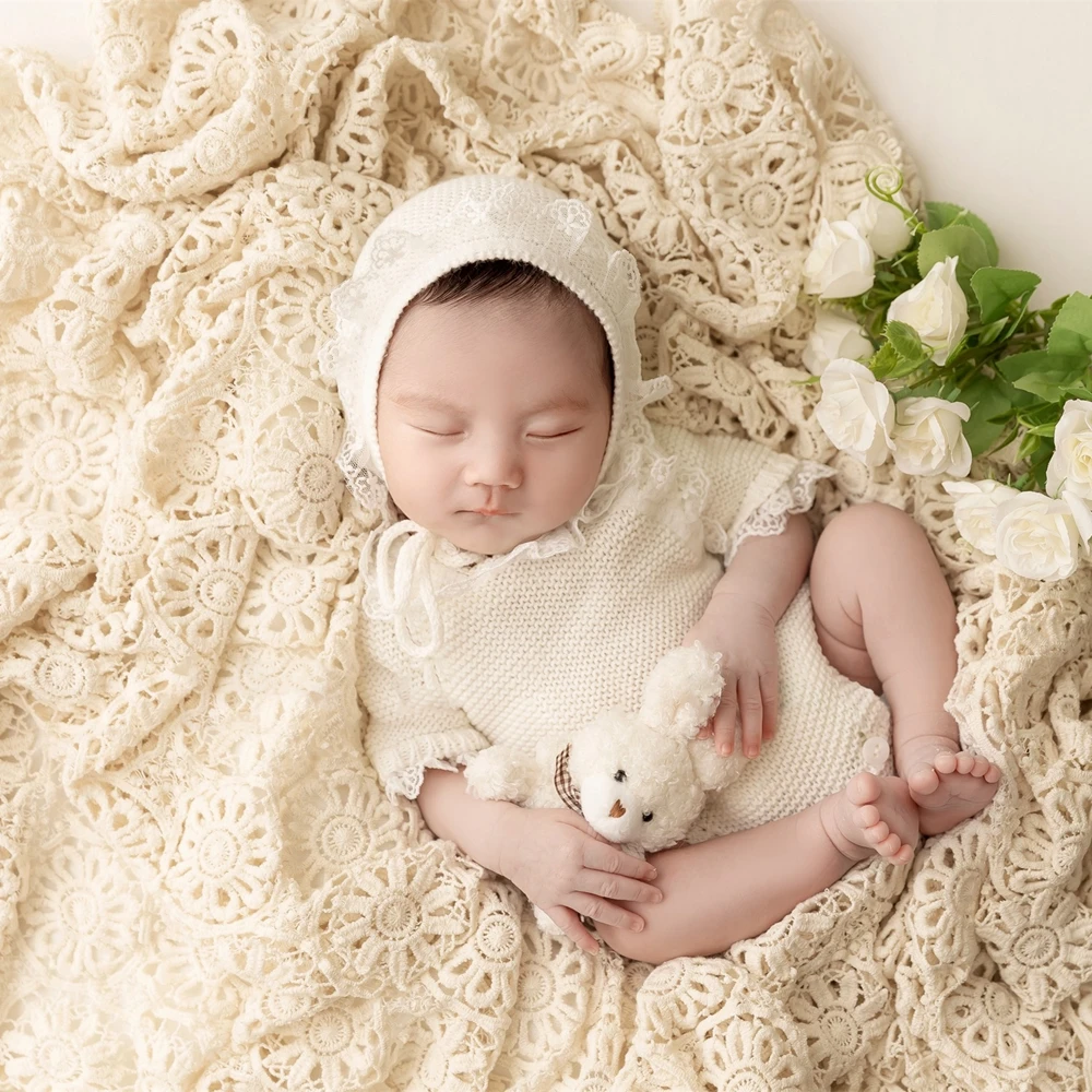 Lace Baby Blanket Newborn Photography Props Cotton Newborn Posing Backdrop Long Fotoshooting Layer Baby Photography Accessories