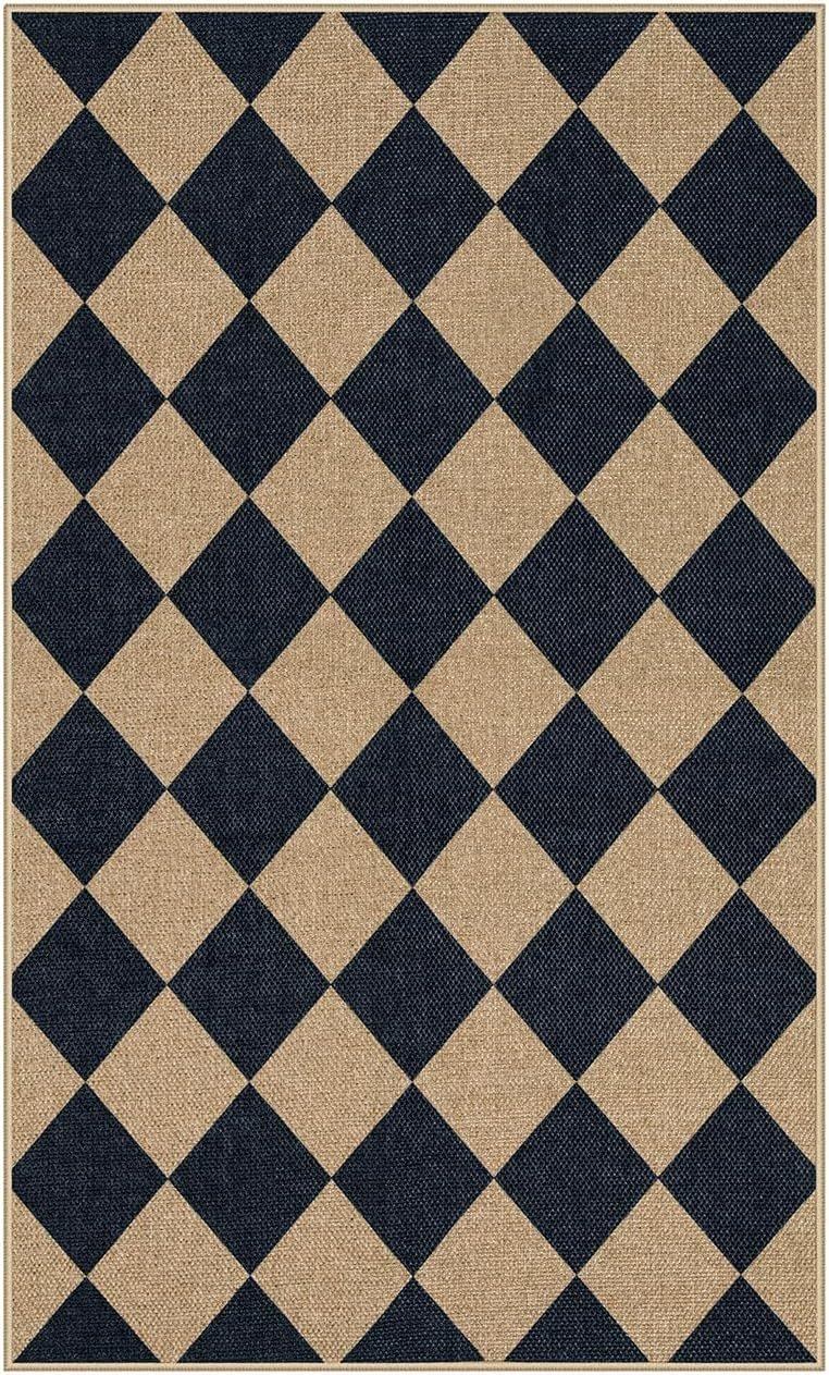 Lahome Checkered Easy Jute 3×5 Outdoor Patio Rug, Washable Rugs for Entryway Diamond Indoor Outdoor Living Room Carpet, Farmhouse Neutral Non Slip Black Door Carpet for Backyard Bedroom