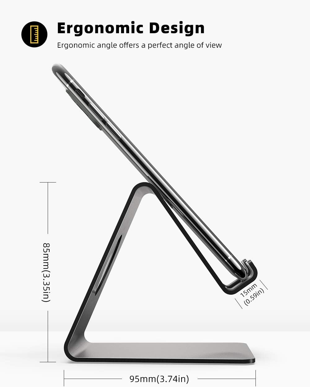 Suitable Viewing Angle: The phone cradle for desk provides you with a comfortable viewing angle. Put it on your office desk, and you can see at a glace incoming notifications and calls when the phone is in silent mode.