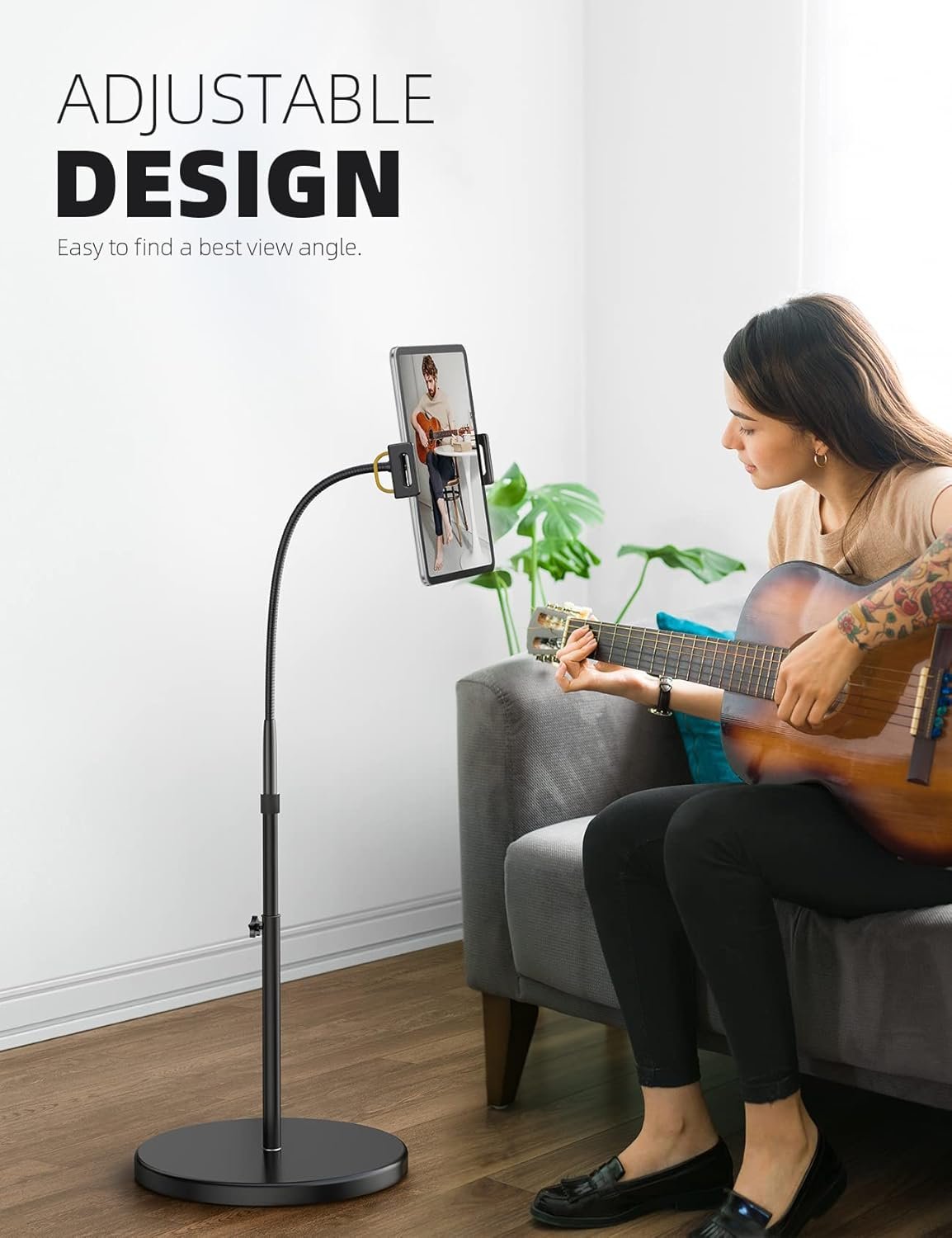【Broad Usage Place】The tablet floor gooseneck stand can be used any where without other support.You can use it in your living room, bedroom, kitchen, office, classroom, etc. And it also can be used for taking picture, Youtube video Recording,taking class and so on.