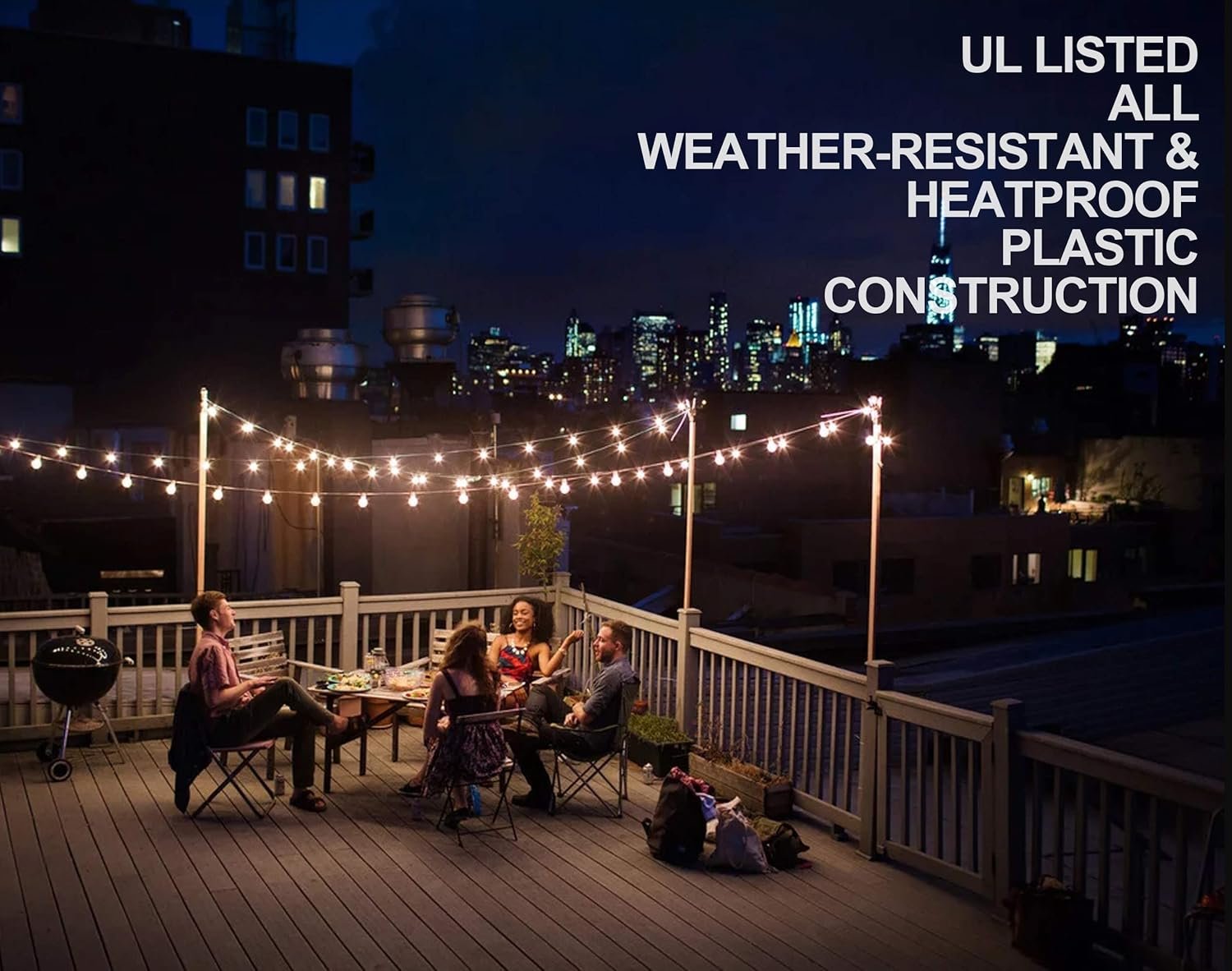 Commercial Quality & great for indoor / outdoor lighting applications. Great for patios, decks, weddings, tents, pergola, bistro, backyards, pool umbrella and parties