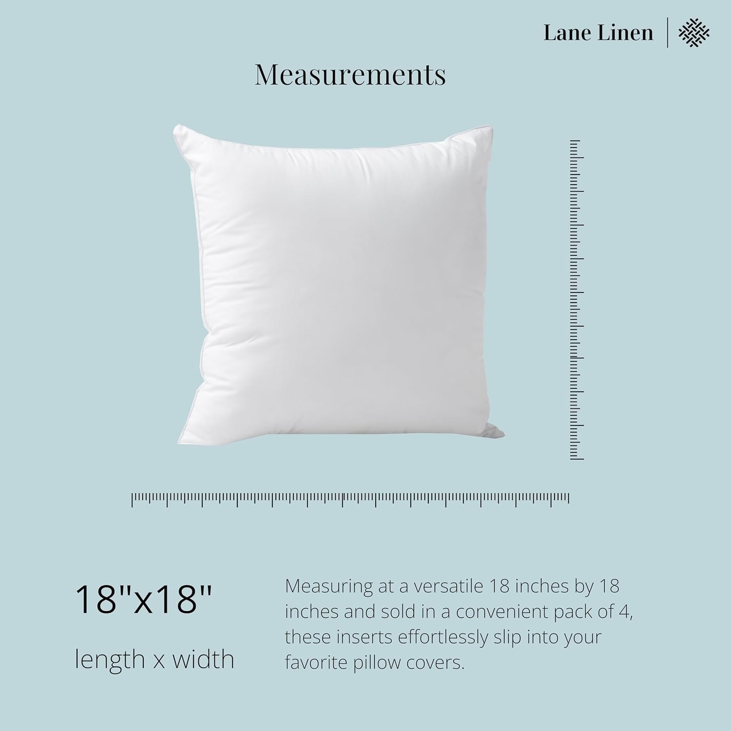 LANE LINEN 4 Pack 18×18 White Throw Pillow Inserts for Decorative Pillow Covers, Couch Pillows for Living Room, Fluffy Pillows for Bed