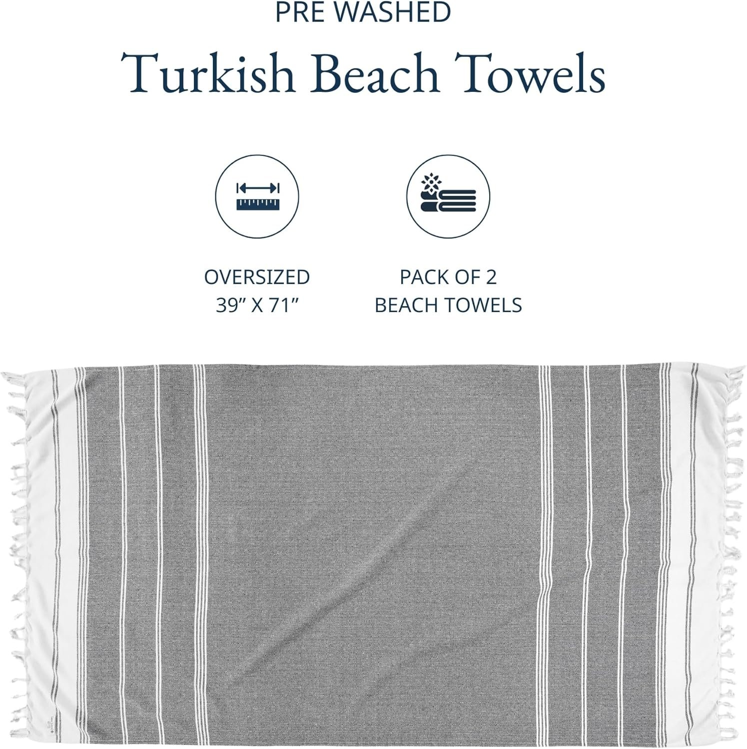 LANE LINEN Beach Towel, 2 Pack Beach Towels Oversized, 39″x71″, Quick Dry Pool Towels for Adults, Absorbent Sandproof, Lightweight Travel Beach Towel – Ebony