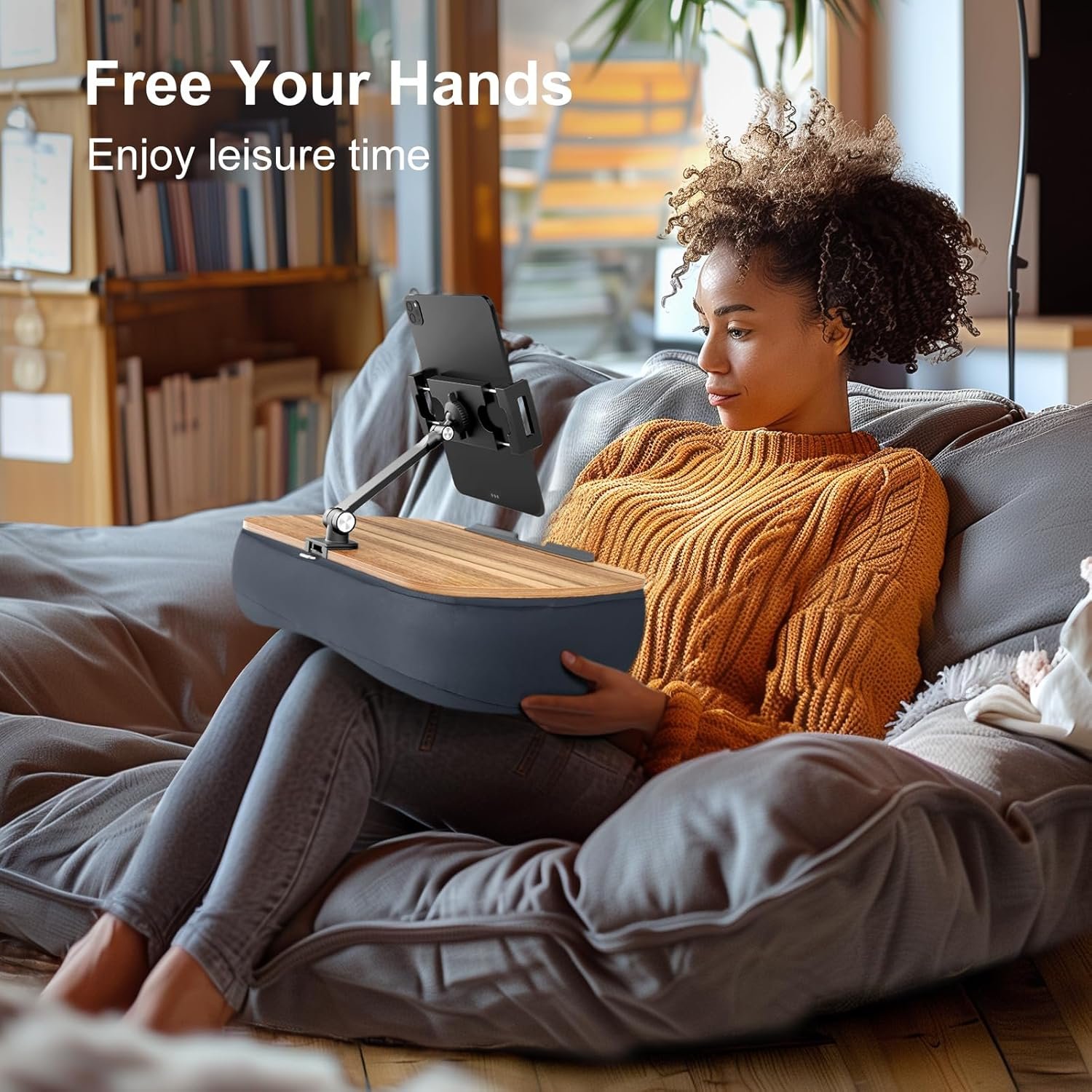 【VERSATILE USAGE】 This product functions as both a tablet holder and a lap desk. Attach the arm for tablet use or remove it for a cozy lap desk on the bed or sofa.