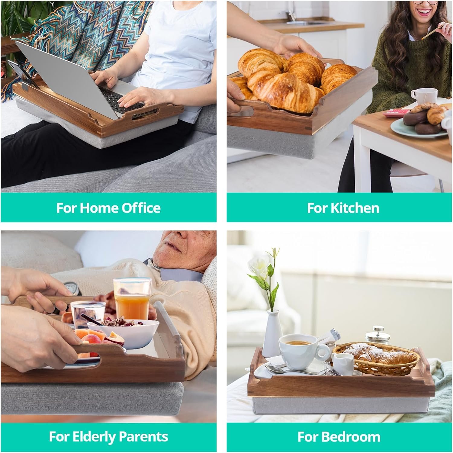 Lap Desk with Cushion,Wooden Bed Tray Table for Eating,Lap Tray in Recliner,Breakfast Tray,TV Dinner Bed Food Trays (Acacia Wood A)