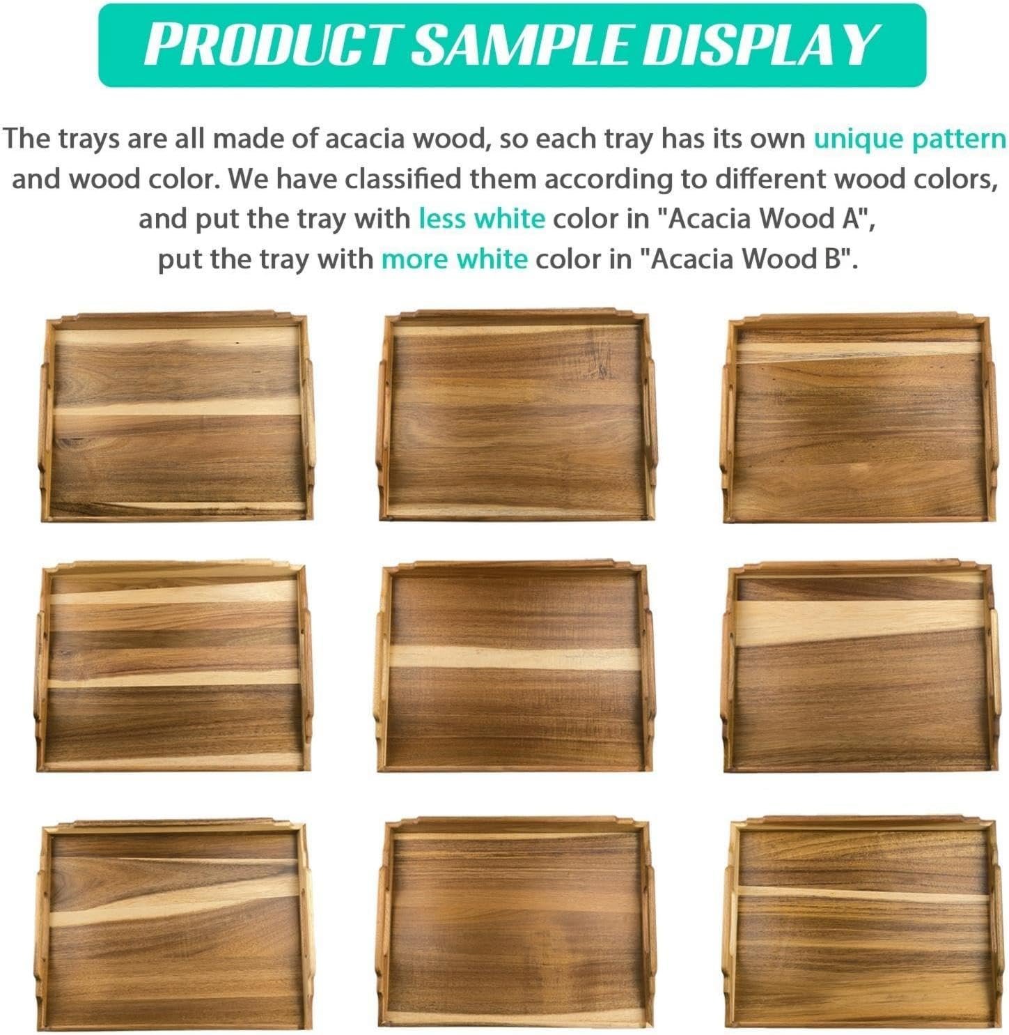 【 Acacia Wood Bed Tray Table】:Sturdy wooden serving tray crafted of Acacia Wood, natural wood grain, gloosy and touch smooth. Easy to Clean and storage. Light weight bed food tray is easy to grab in your living room/kitchen because of the built-in sleek handles for easy mobility.