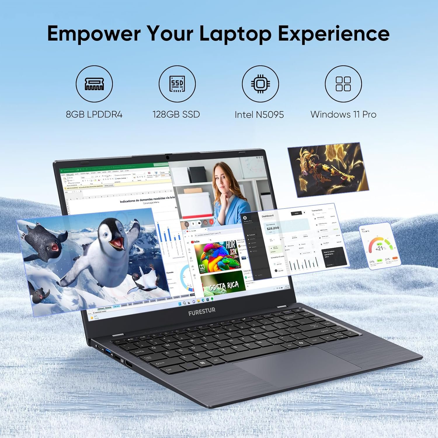 Optimal Performance: Equipped with an N5095 processor, this 14 inch laptop is built for optimal performance in everyday computing tasks. It strikes the perfect balance between processing power and energy efficiency, making it an excellent choice for users who value longevity and reliability.