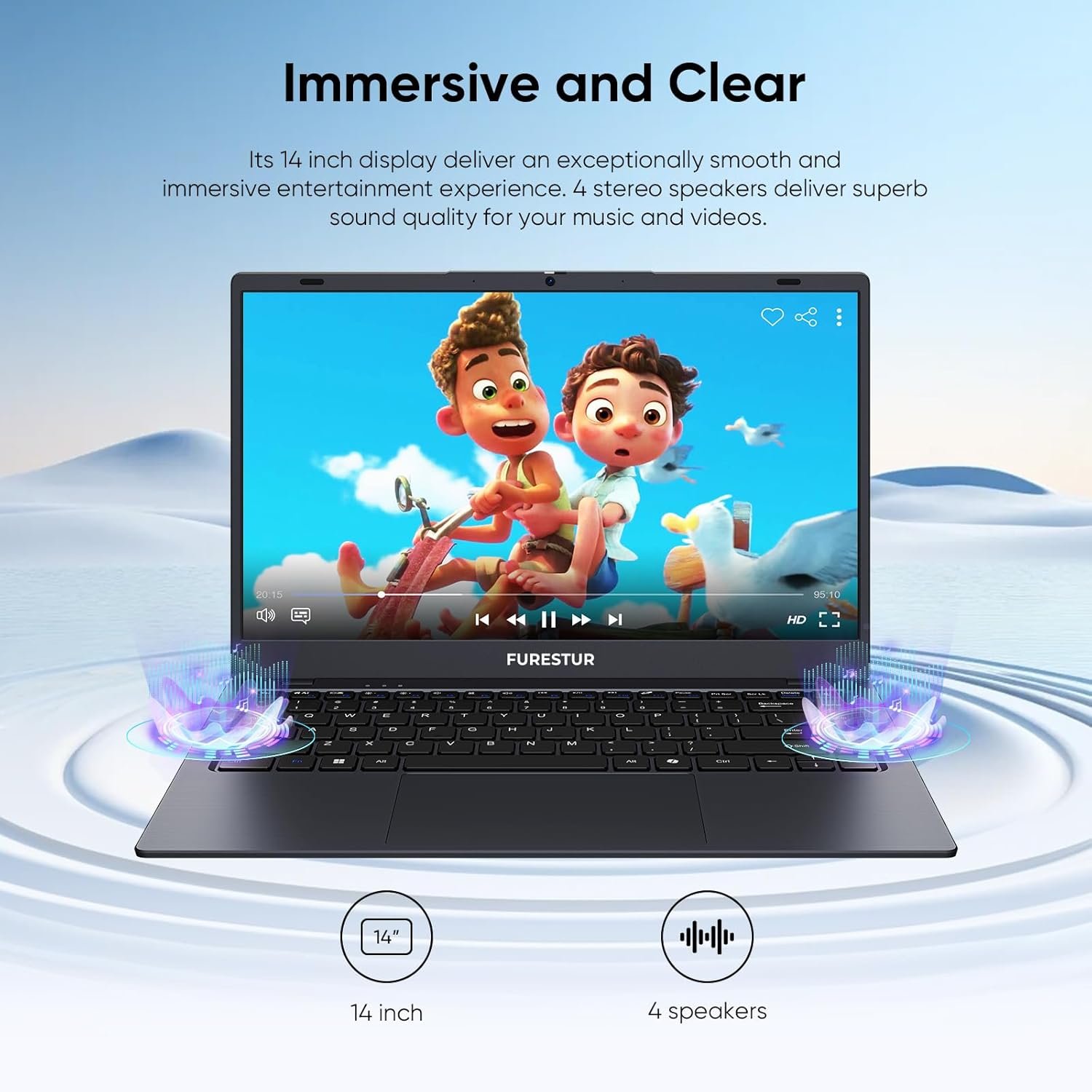 Visual and Audio Delight: Enjoy a 14-inch HD screen that brings your content to life with crisp clarity and vibrant colors. Complementing the visual experience are stereo speakers that deliver rich, immersive audio, making this laptop ideal for both work and entertainment.