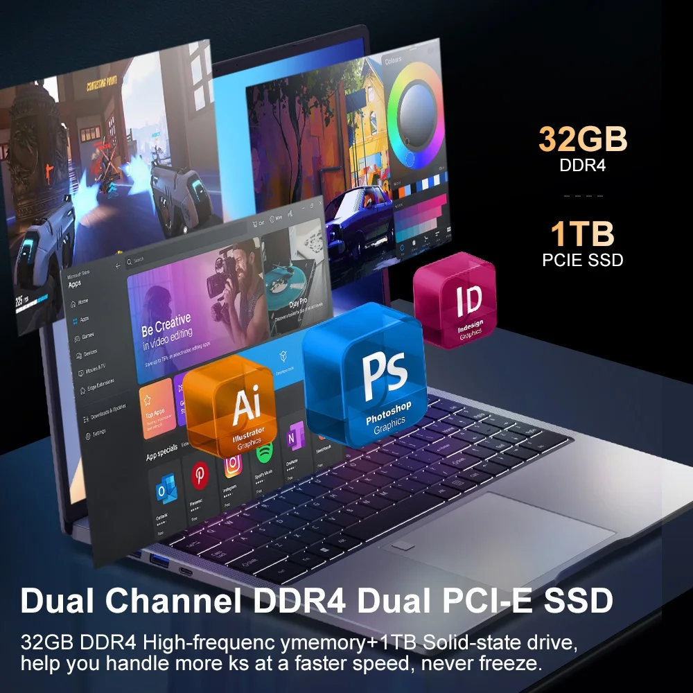 3. Memory and Storage: 32GB DDR4 memory means you can run multiple applications simultaneously without worrying about performance degradation. The 1024GB (or 1TB) SSD provides ample storage capacity for large files and applications, and provides fast read and write speeds to help improve system performance.
