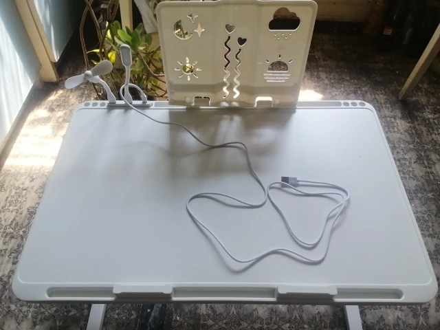 Its good value for the money, the usb extension is only power does not supply data same thing for the usb cable that comes with the table, the book shelf is only useful for very thin books, but the table itself is good and stable.