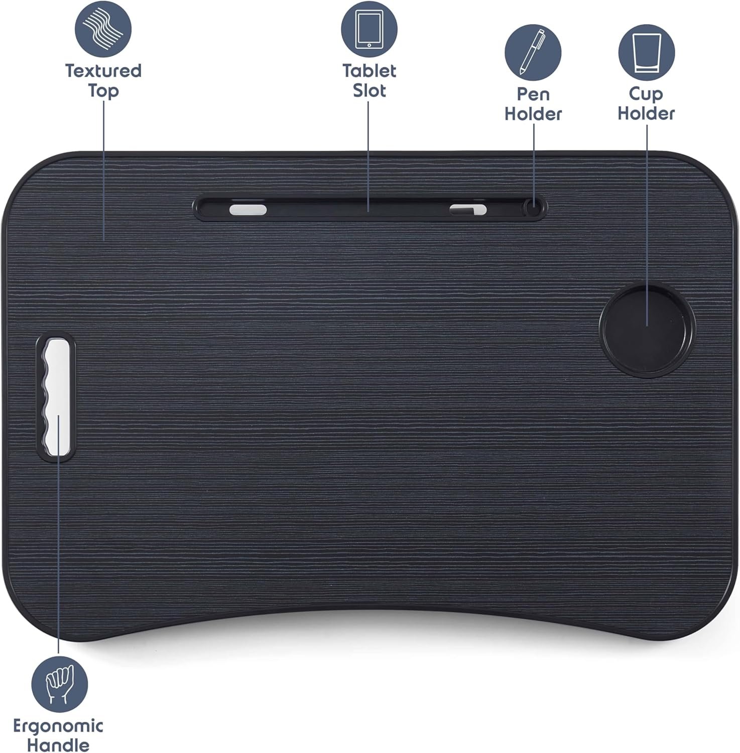 Ergonomic Design: Specially designed laptop bed desk allows for comfortable use as a lap desk table while sitting or lying in bed, on the couch, at your desk, or even on the floor.
