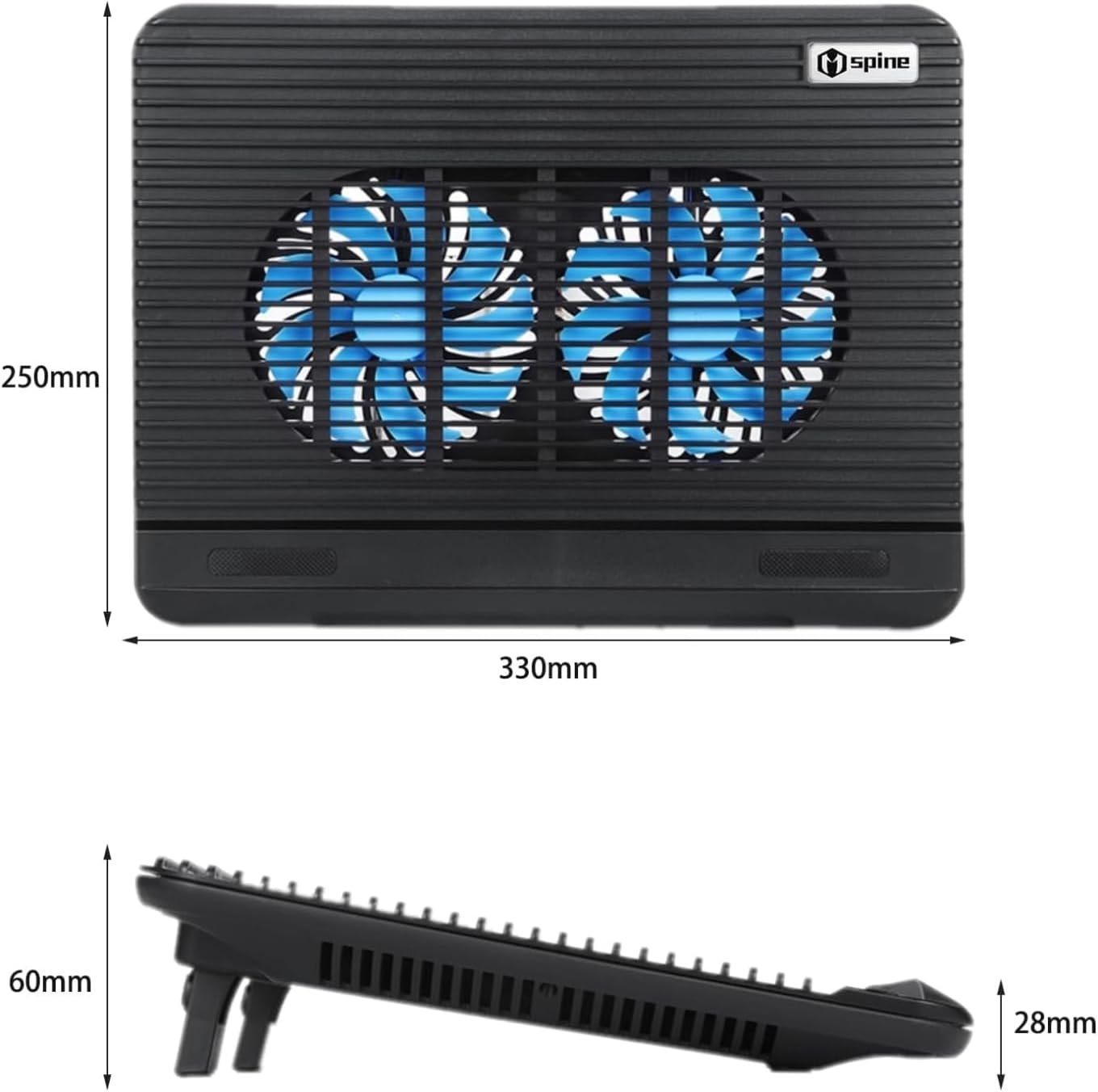 Laptop Cooling Pad for 11-15 Inch Notebook, Mspine Laptop Cooler Ergonomic USB Powered Laptop Stand with Dual USB 2.0 Ports, Height-Adjustable Notebook Cooler (2 Fans – Black)