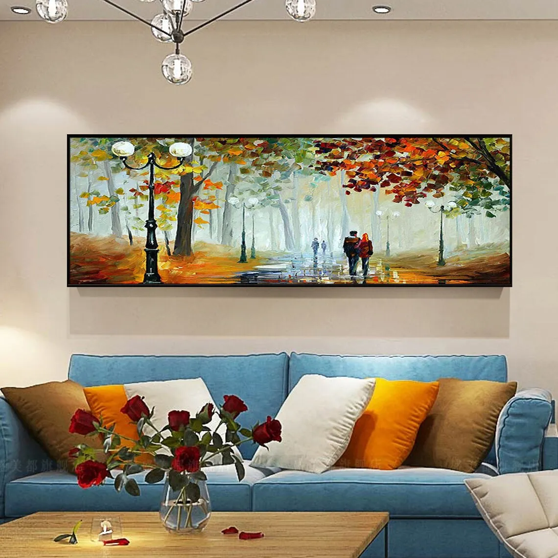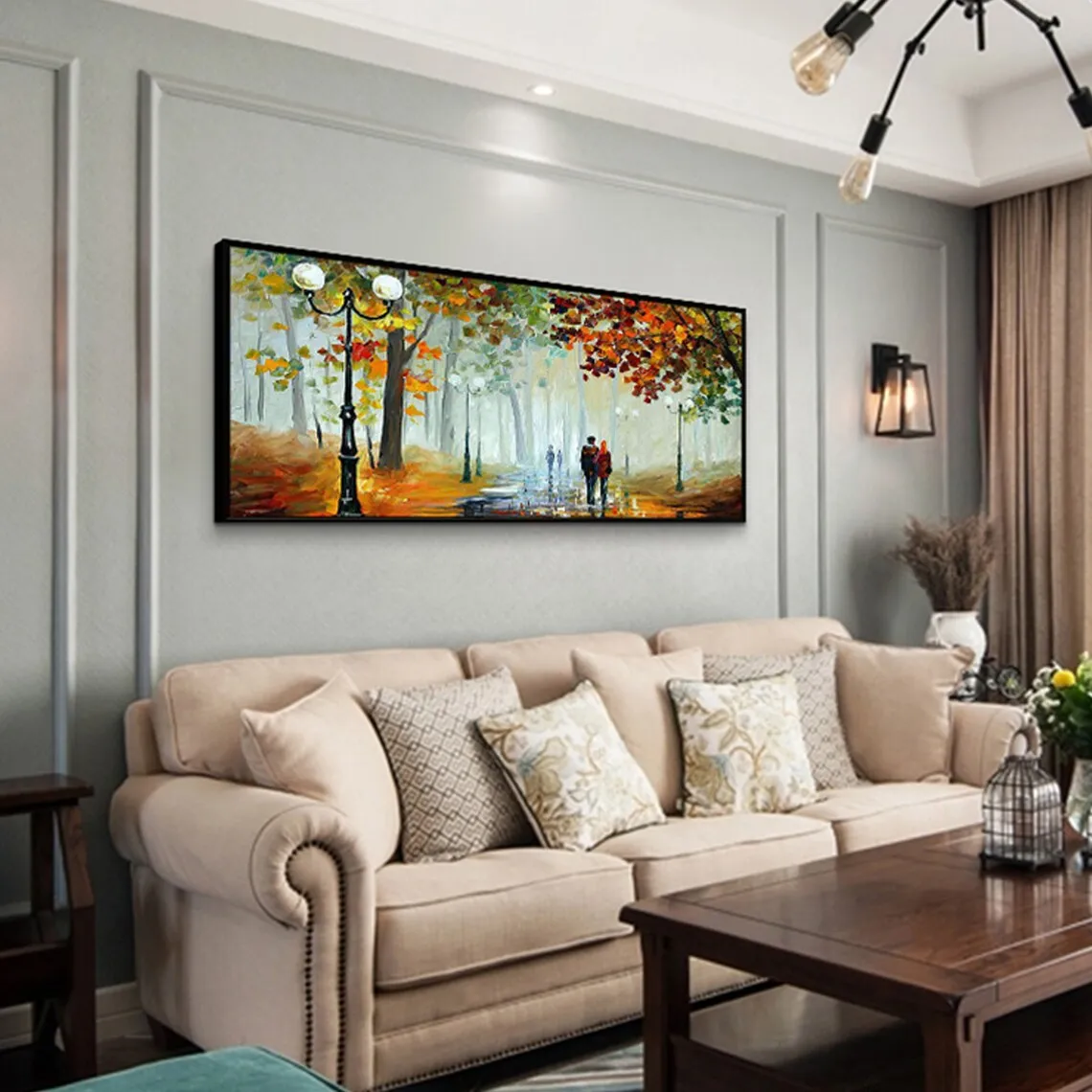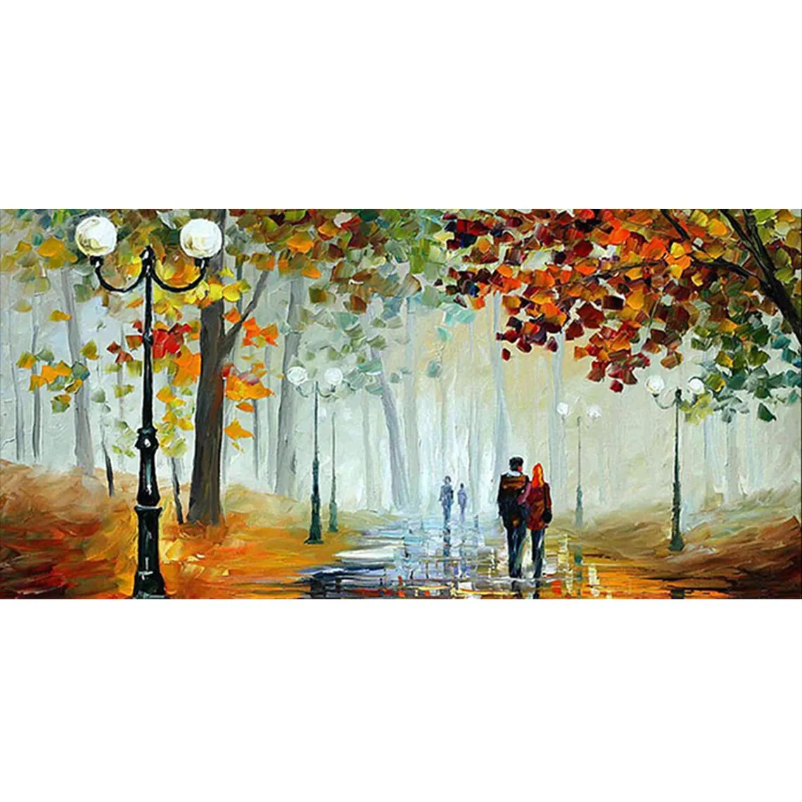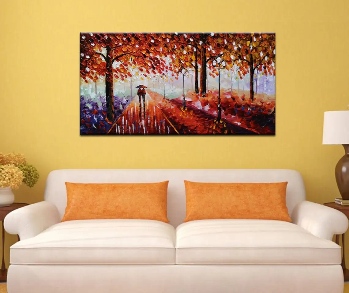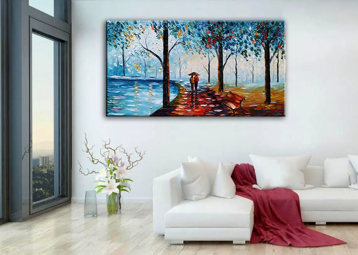 Large 3D Oil Painting Handmade Multi-Color Thick Painting Landscape Wall Art Canvas Romantic Couple In Forest Artwork Home Decor