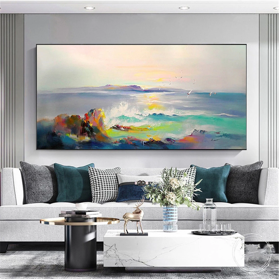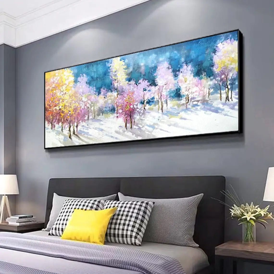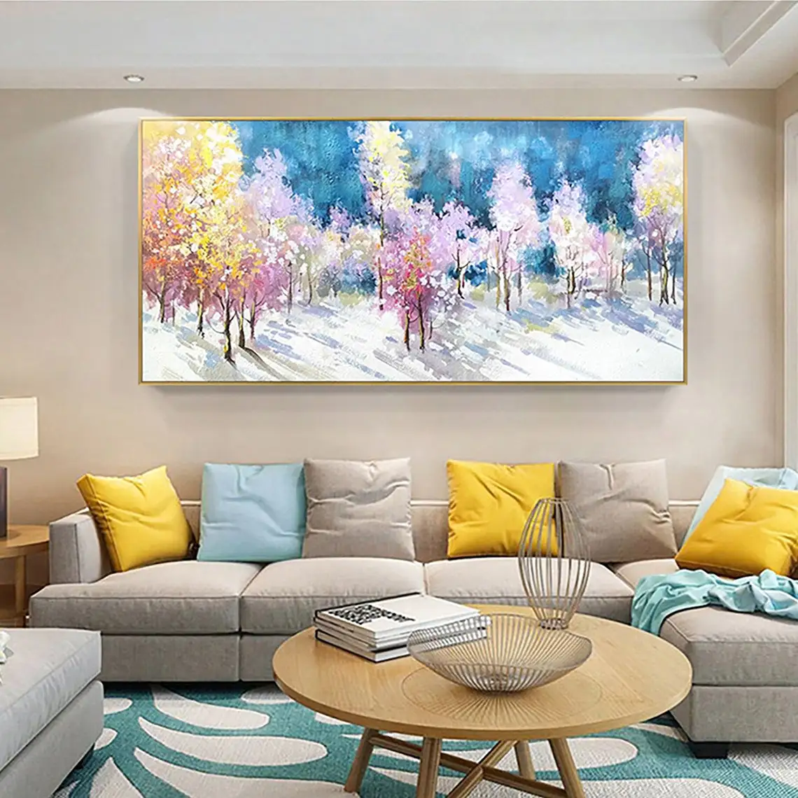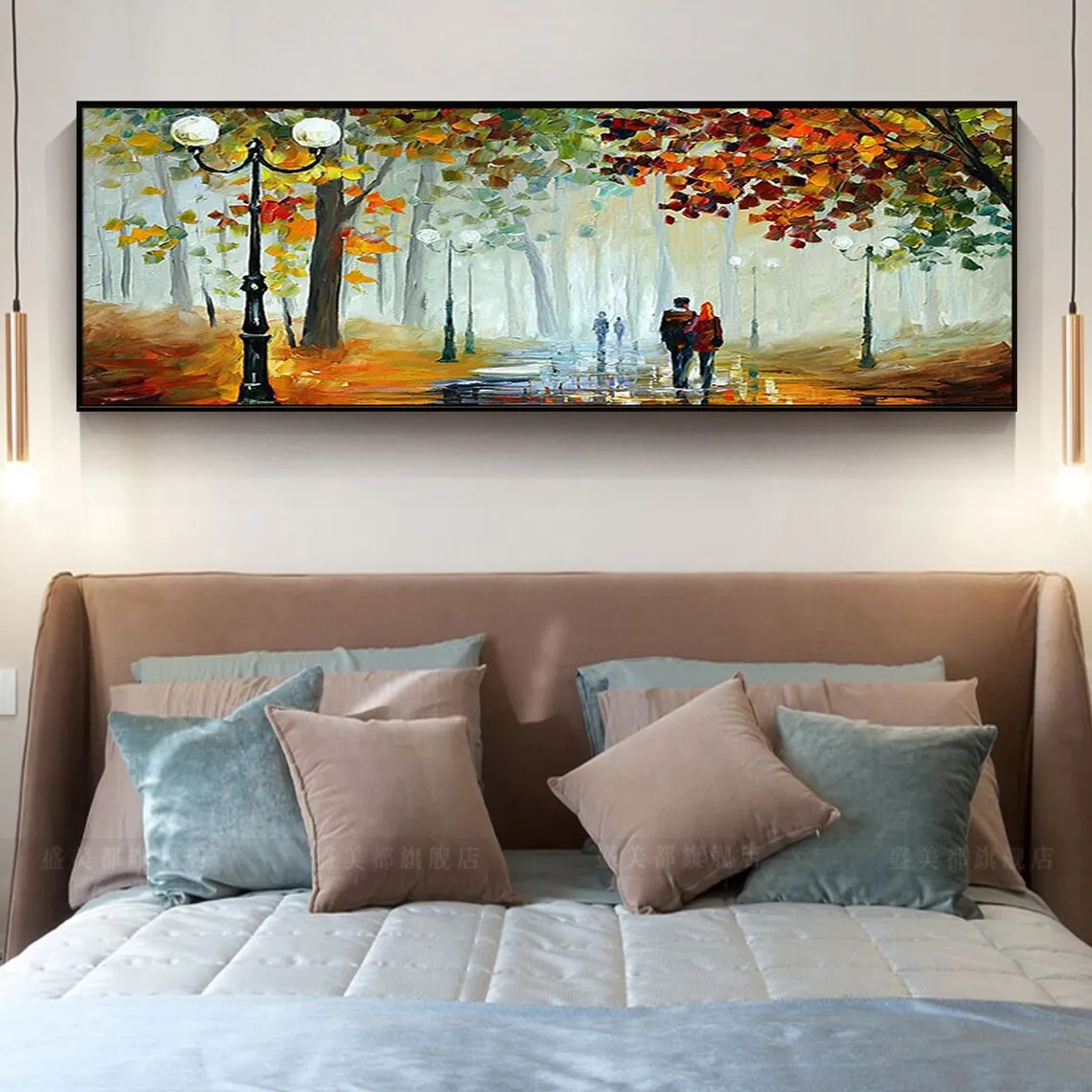 Large 3D Oil Painting Handmade Multi-Color Thick Painting Landscape Wall Art Canvas Romantic Couple In Forest Artwork Home Decor