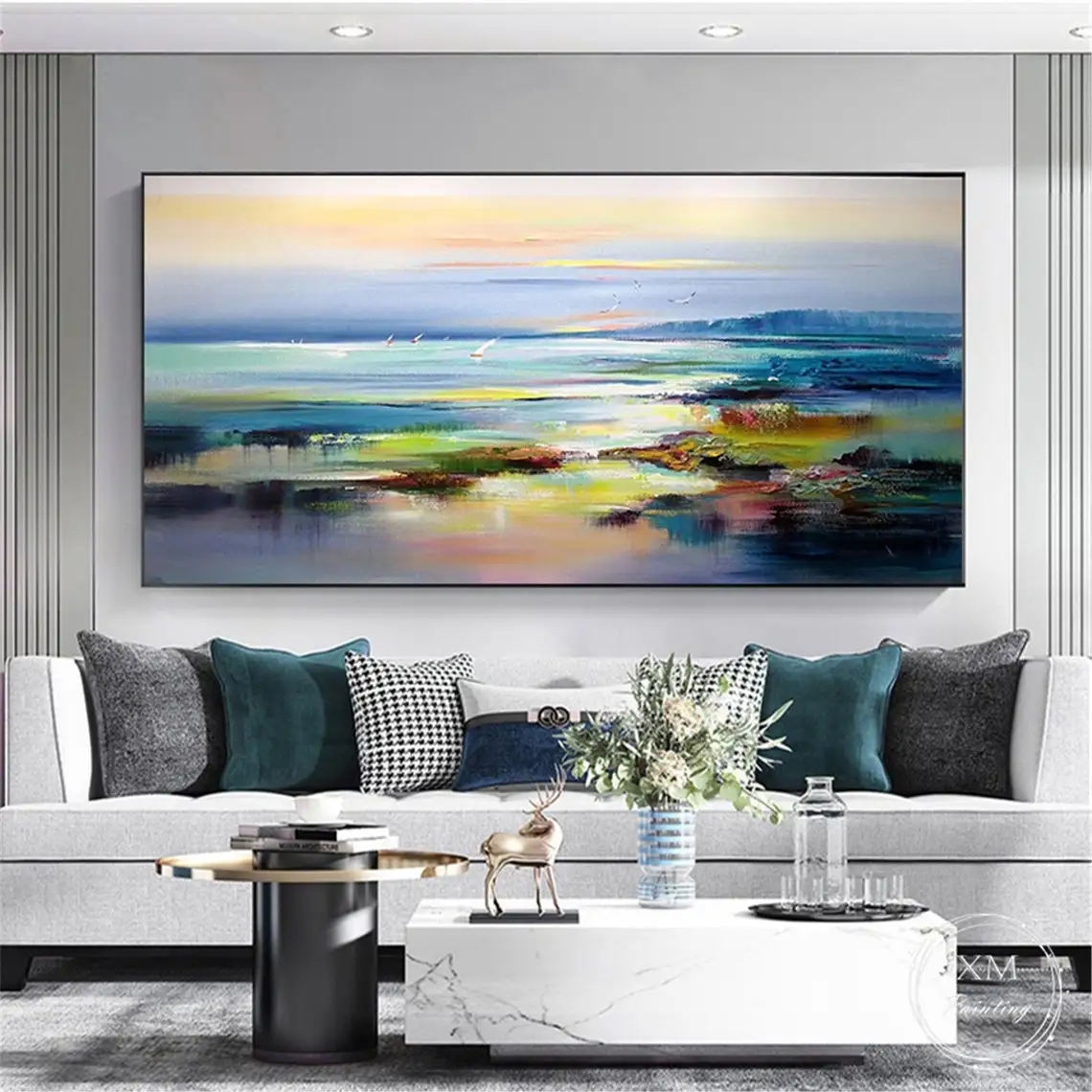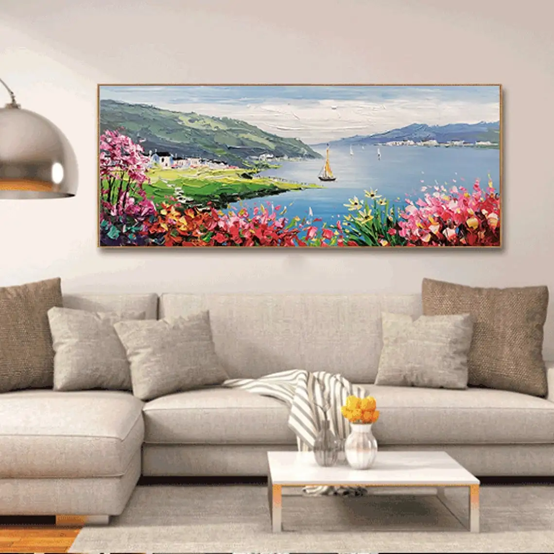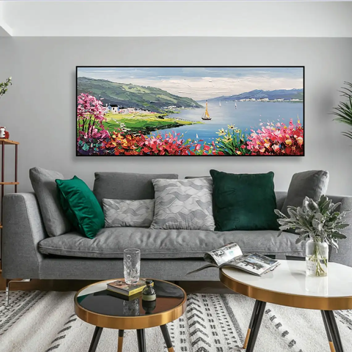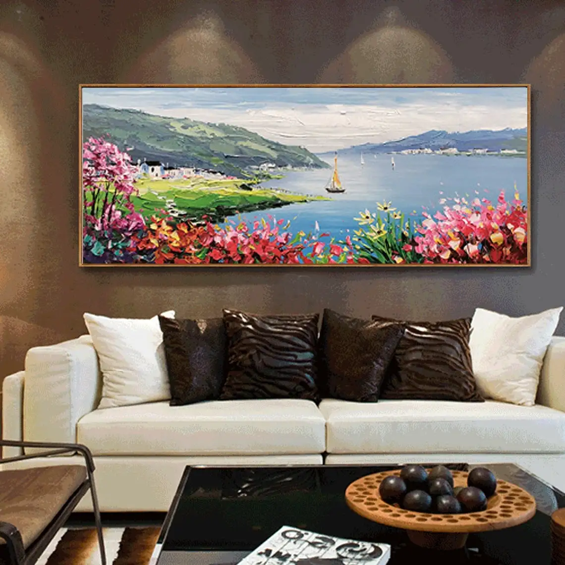 Large 3D Oil Painting Handmade Multi-Color Thick Painting Landscape Wall Art Canvas Romantic Couple In Forest Artwork Home Decor