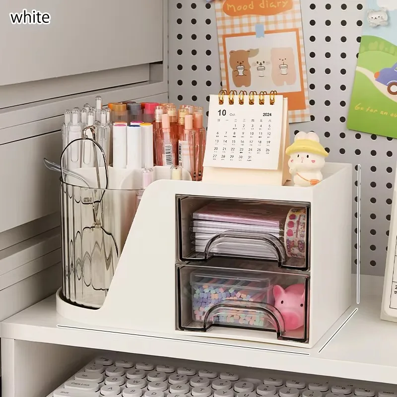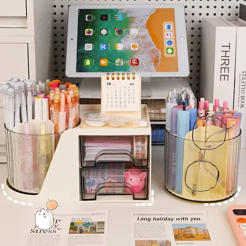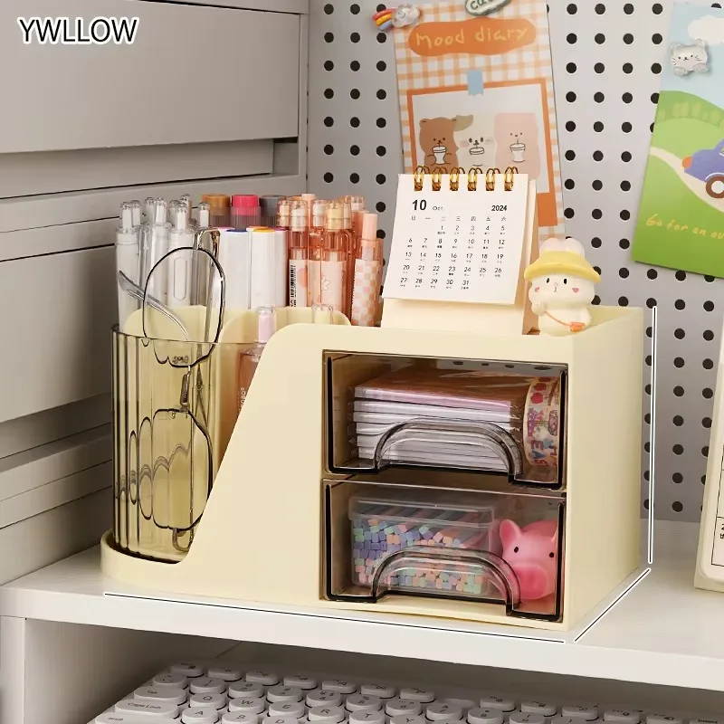 Large Capacity Plastic Pen Holder Double Layer Versatile Storage Box Office Student Desktop Stationery Storage Light Luxury Gift