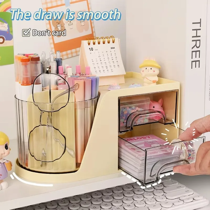 Large Capacity Plastic Pen Holder Double Layer Versatile Storage Box Office Student Desktop Stationery Storage Light Luxury Gift