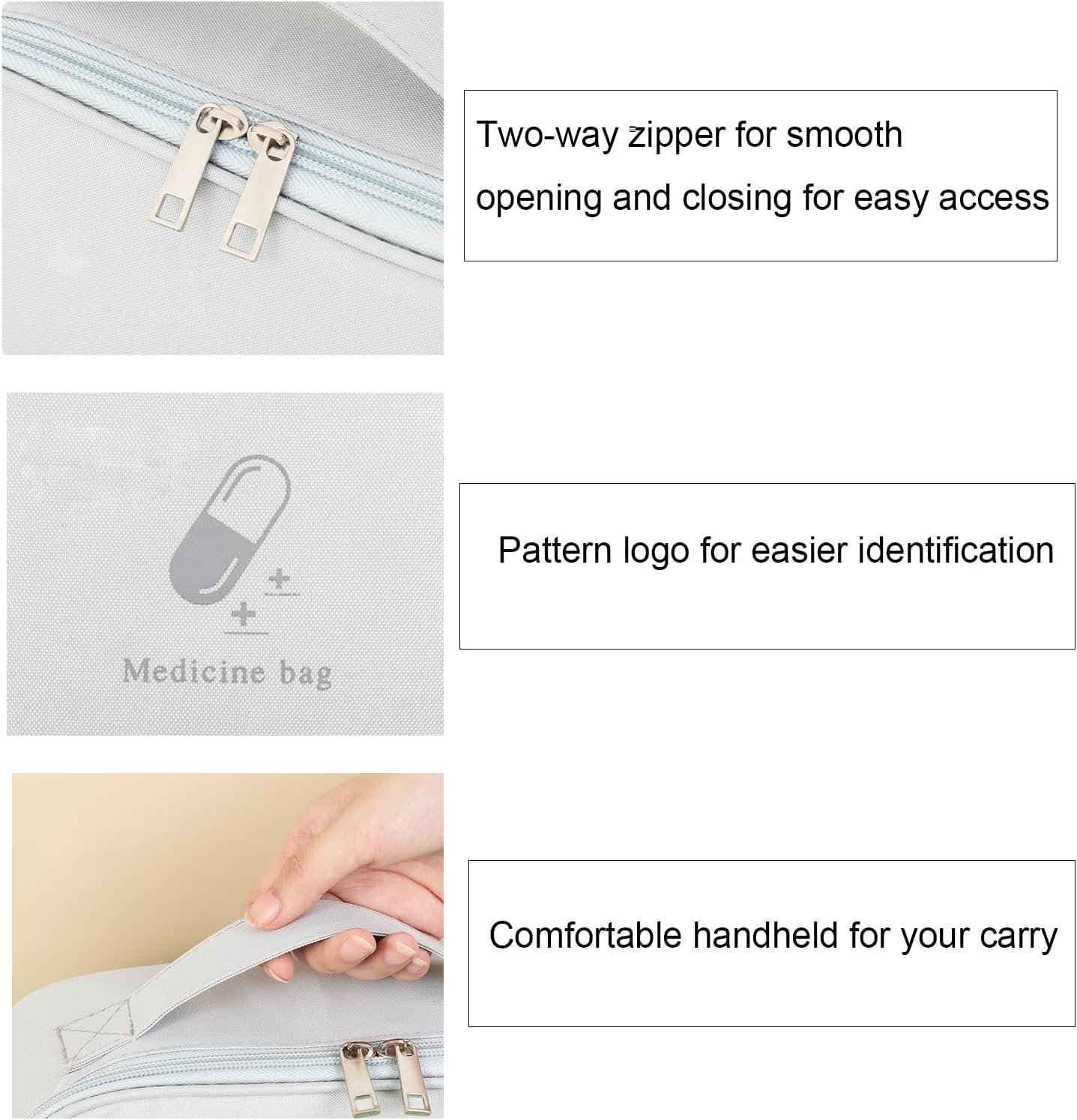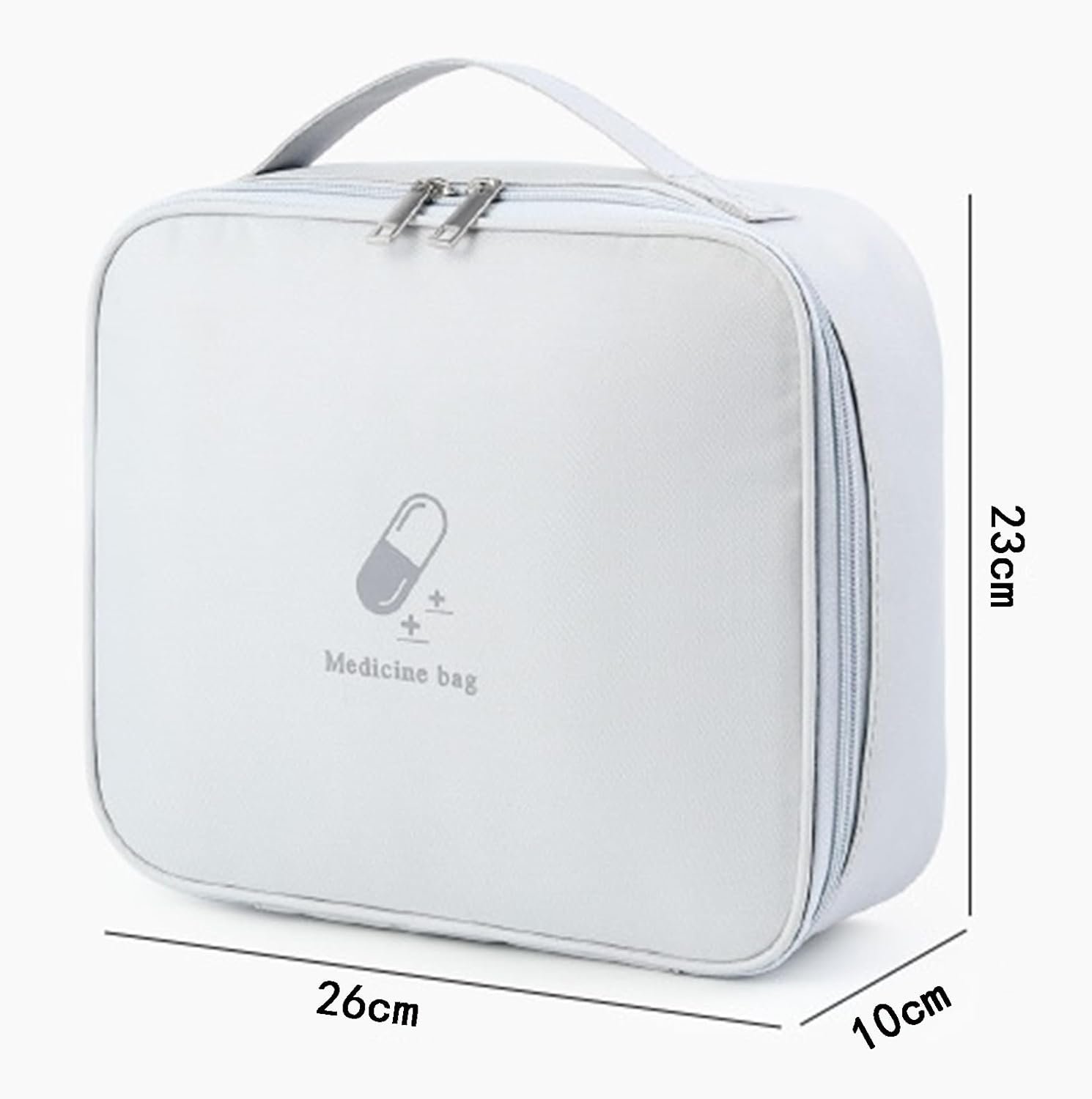 Large First Aid Bag Empty, Portable Travel Pill Bag Double Zipper First Aid Pouch with Handle for Family Outdoors Hiking Camping Car Office Workplace (Gray)