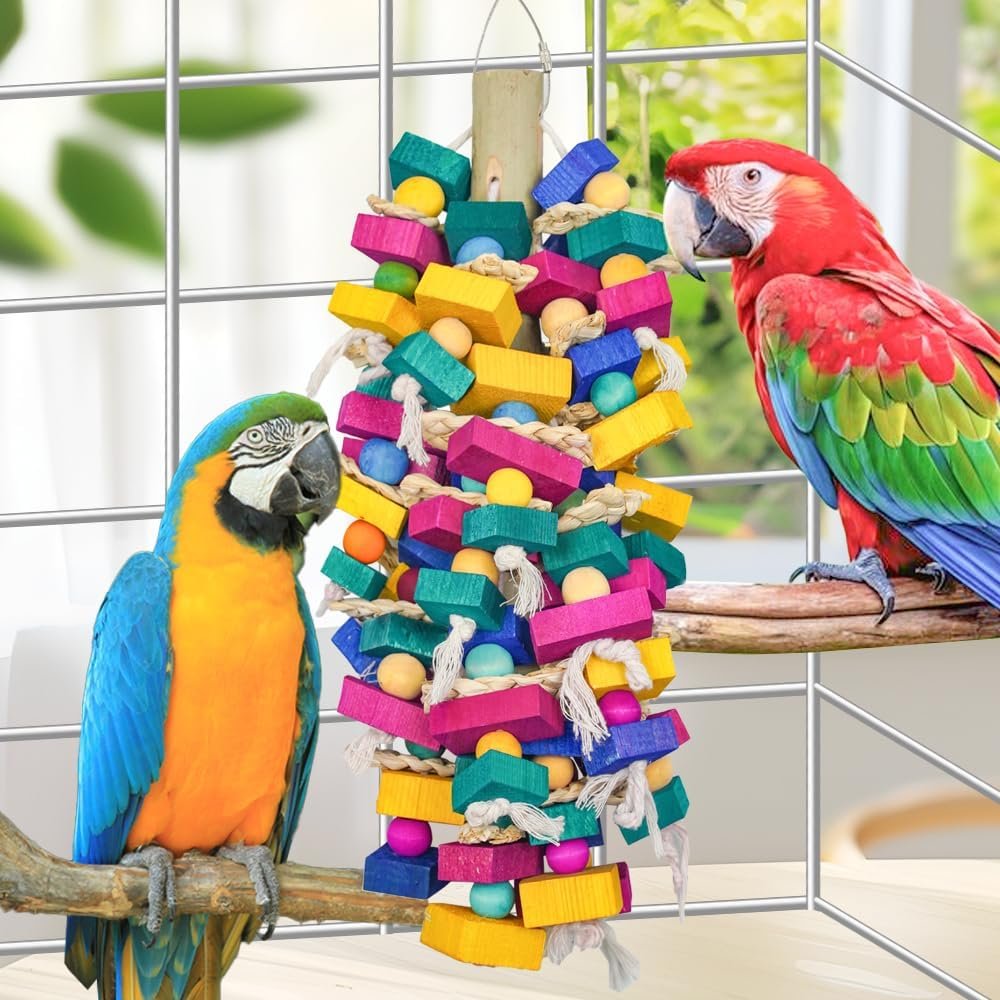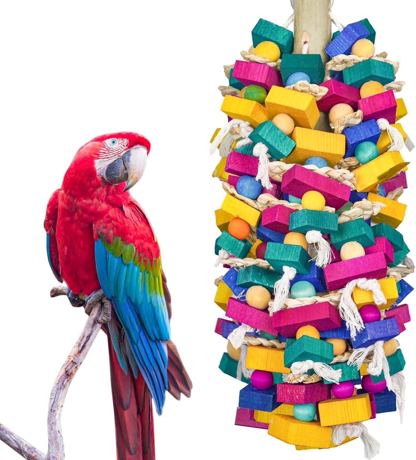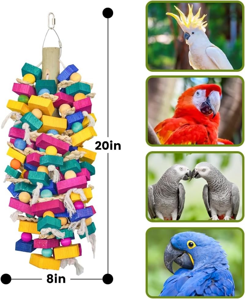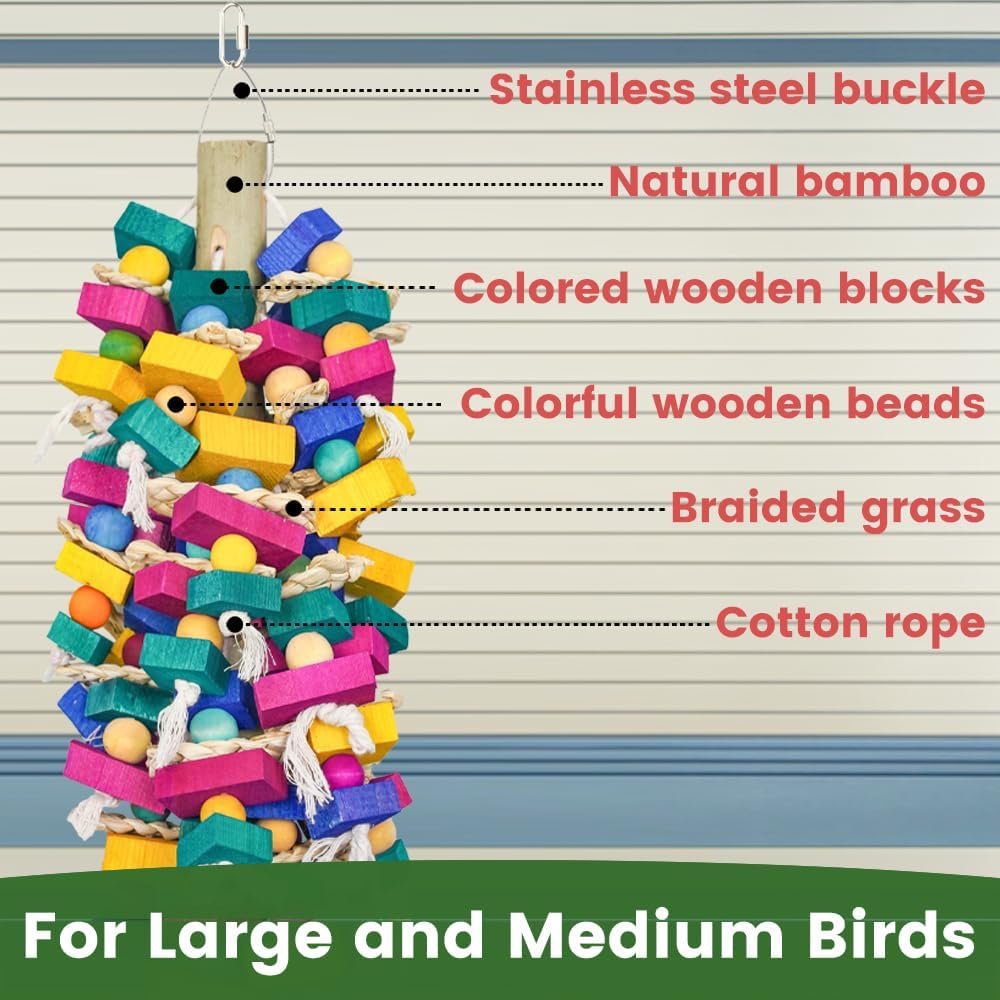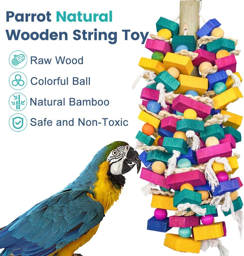 Large Parrot Toys for Macaw Toys Large Bird Toys Cockatoo Toys Natural Wooden African Grey Bird Chewing Toy Multicolor Medium Bird Cage Toy