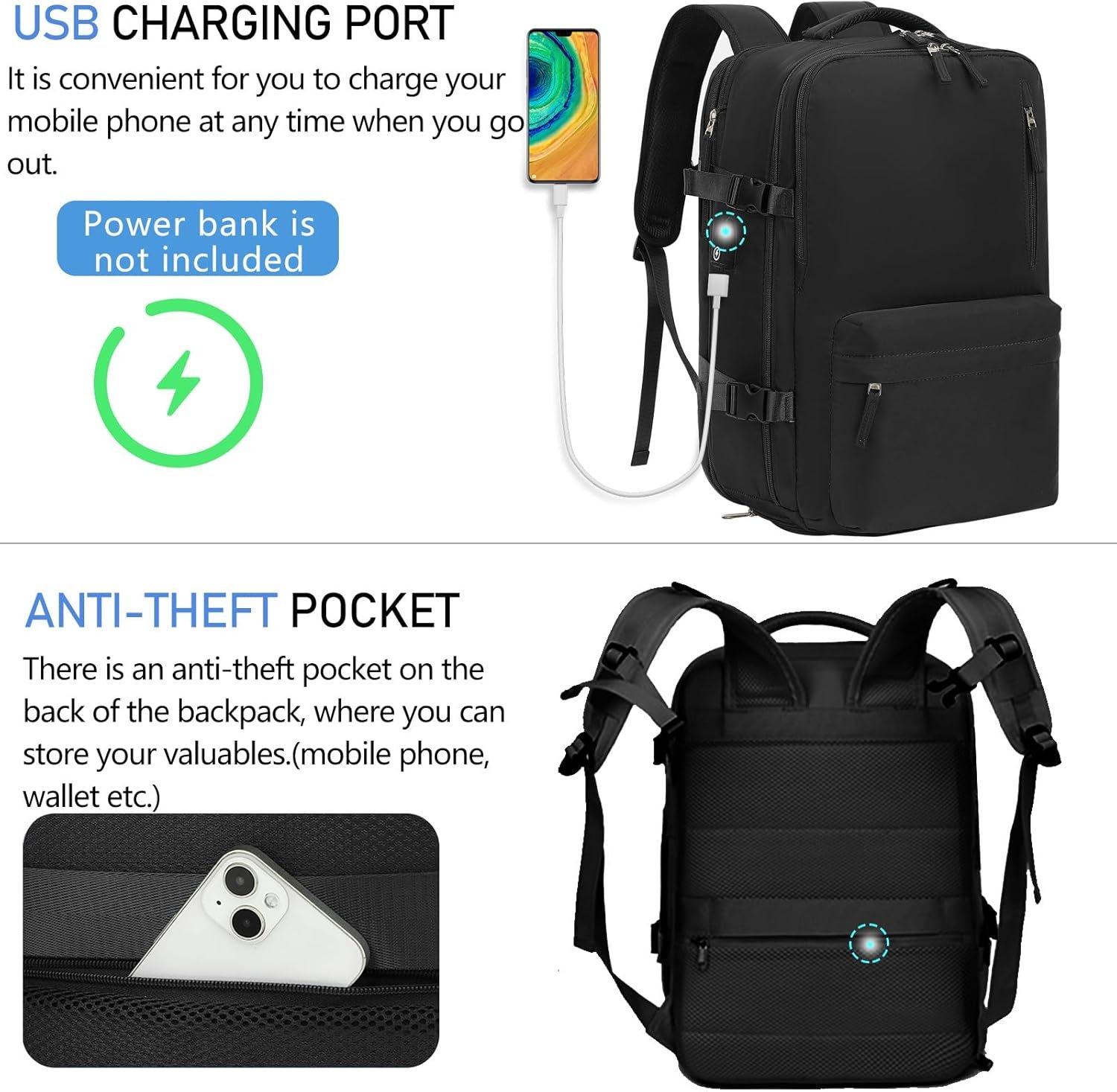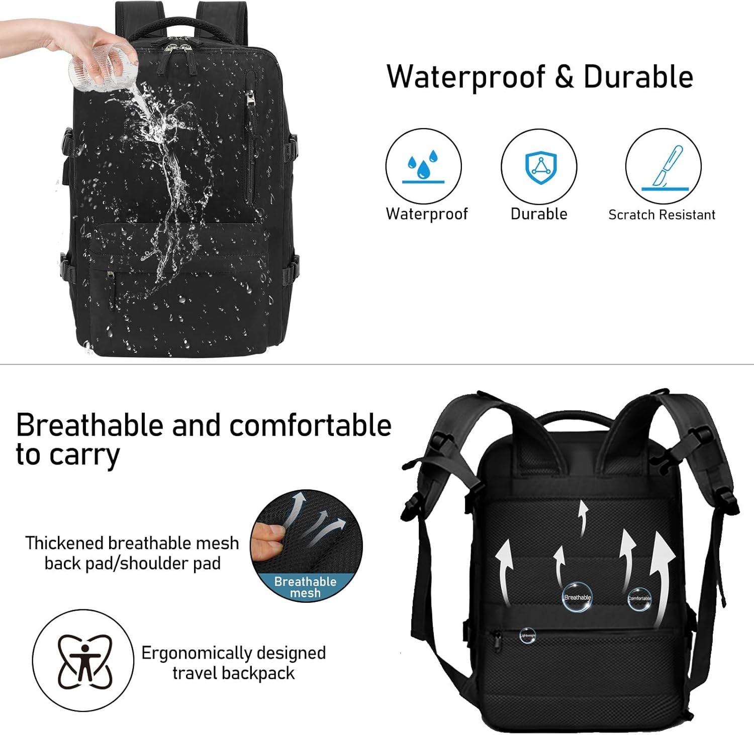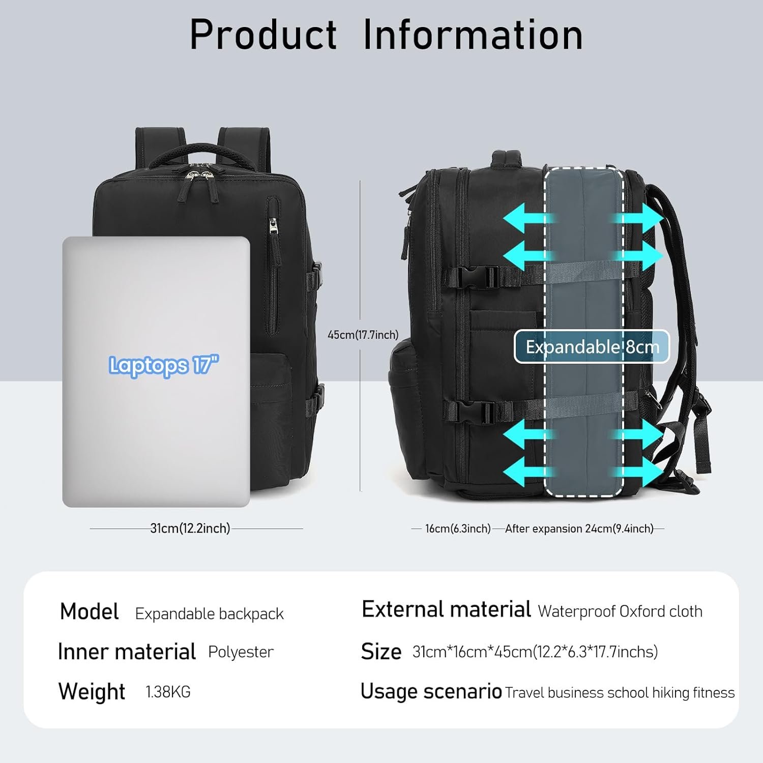 Large Travel Backpack for Women Men Carry On Backpack Waterproof Durable Expandable Laptop Backpack with Shoe Compartment and USB Port Airline Approved Luggage Backpack