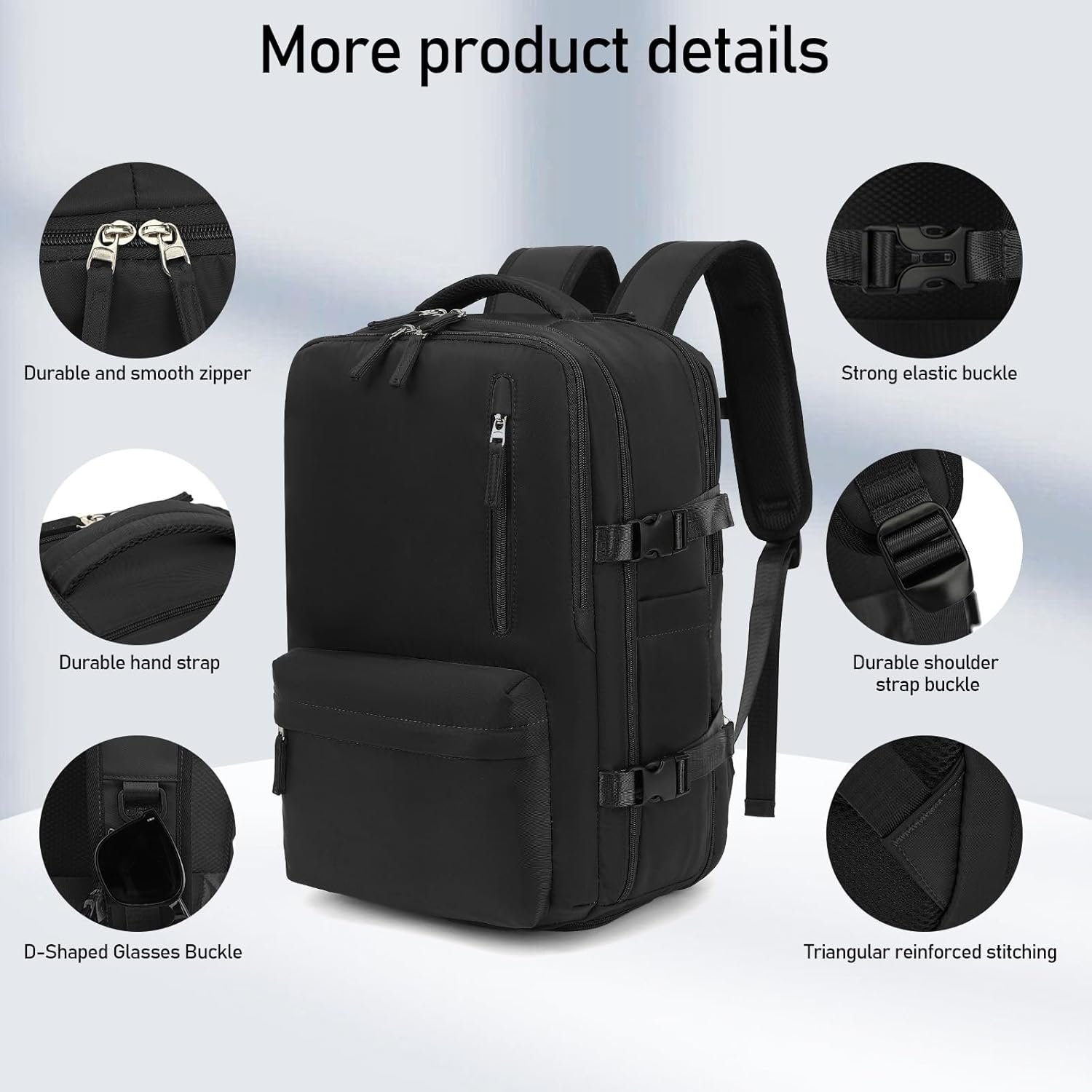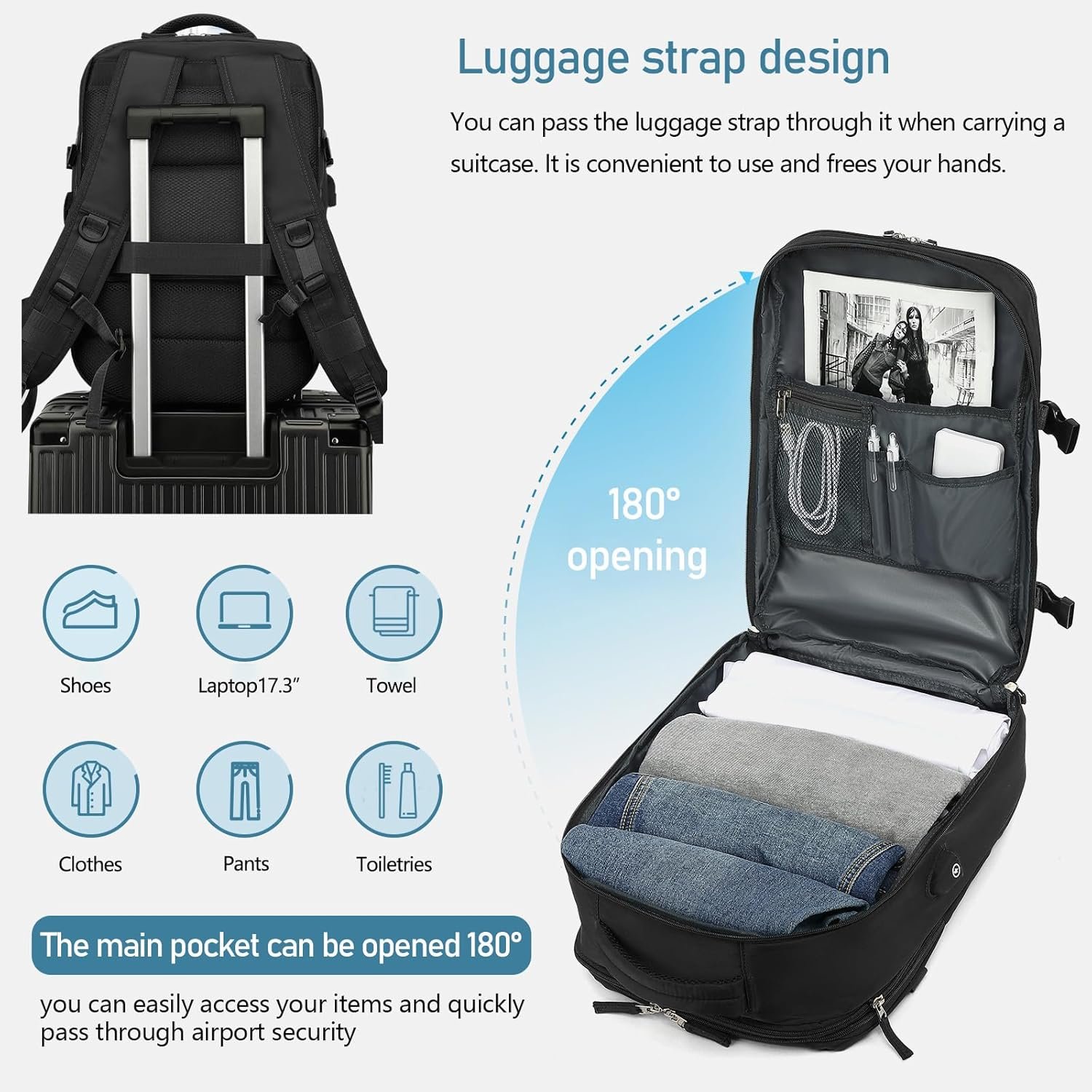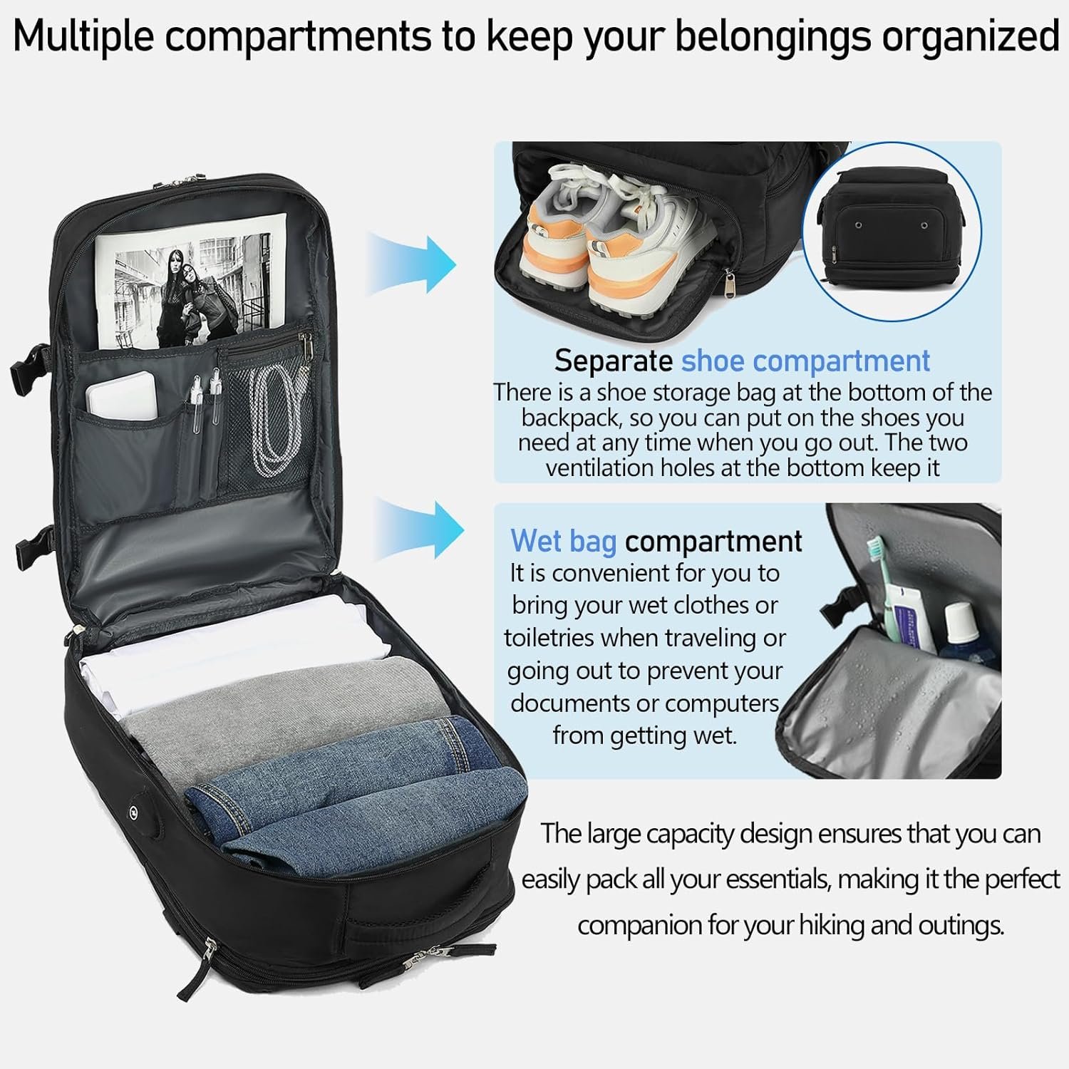 【Large Capacity & Expandable】This extra-large travel laptop backpack with expandable function provides you with up to 45L capacity, similar to a 20-inch rolling suitcase, suitable for 2-5 days of travel. The luggage backpack features separate compartments for clothes, shoes, and wet items, providing ample storage space to keep your belongings organized and easily accessible. The large capacity design ensures that you can easily pack all your essentials.