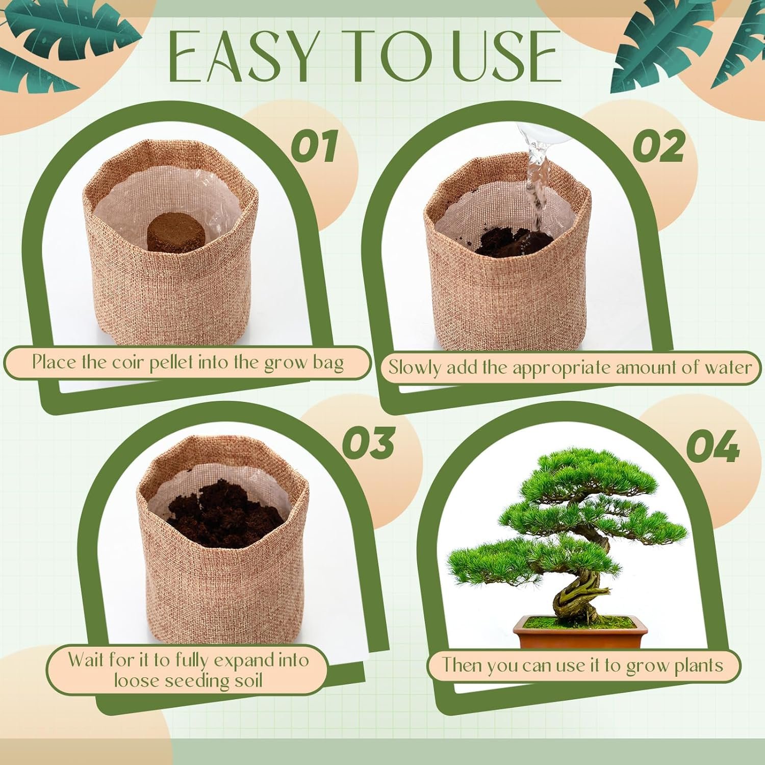 Coconut Coir Soil Mix: our bonsai soil contains coconut coir, which helps with seed germination and promotes the growth of seedlings; It is compressed into soil trays for packing and expands up to 10 times its original size when it absorbs water