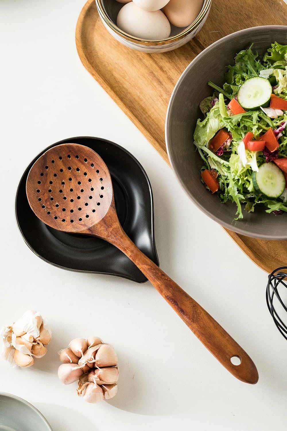 LAUCHUH Spoon Rest for Stove Top, 5 inch Cooking Spoon Holder for Kitchen Countertop Ceramic Ladle Holder for Spatula, Spoons or Tong, Heat-Resistant, Farmhouse Kitchen Decor, Black