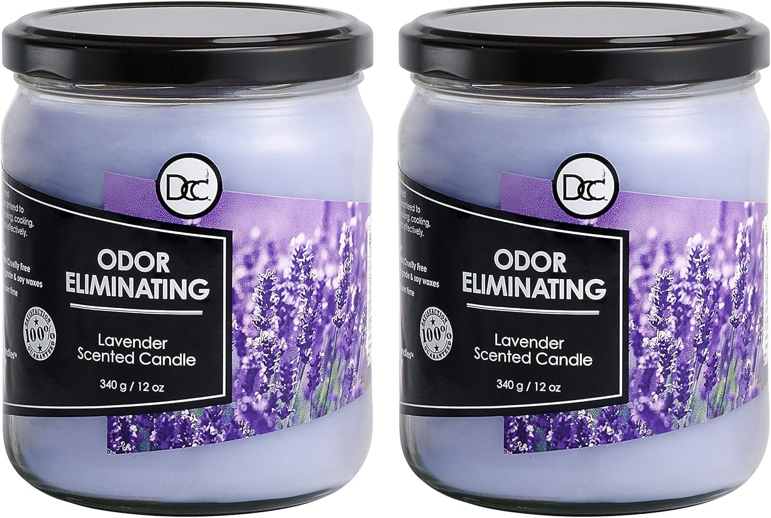 Lavender 2 Pack Odor Eliminating Highly Fragranced Candle – Eliminates 95% of Pet, Smoke, Food, and Other Smells Quickly – Up to 80 Hour Burn time – 12 Ounce Premium Soy Blend
