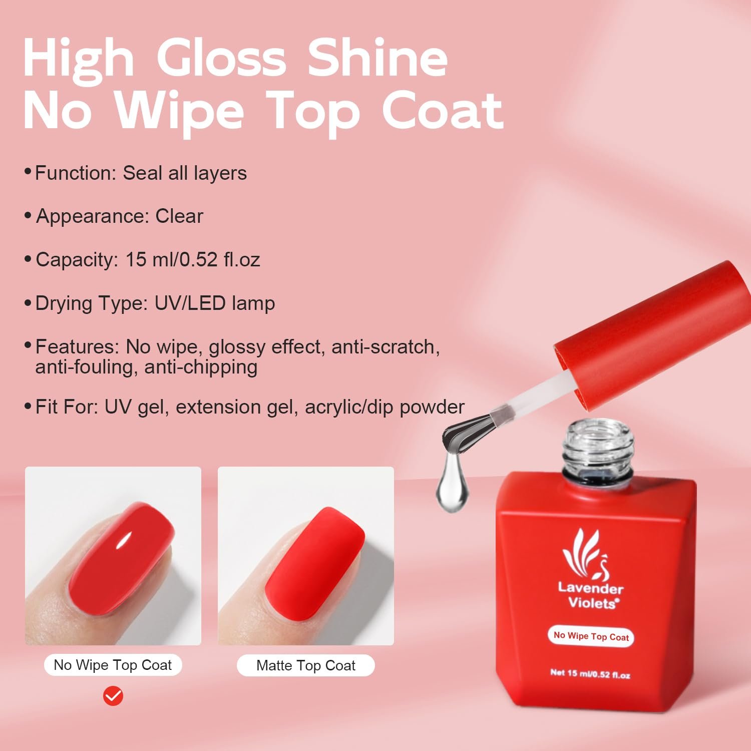 Lavender Violets 15ml Gel Polish No Wipe Top Coat – Clear Color Top Coat Gel Nail Polish Shine Finish and Long Lasting, Soak Off Nail Lamp, Gift for Girls A102