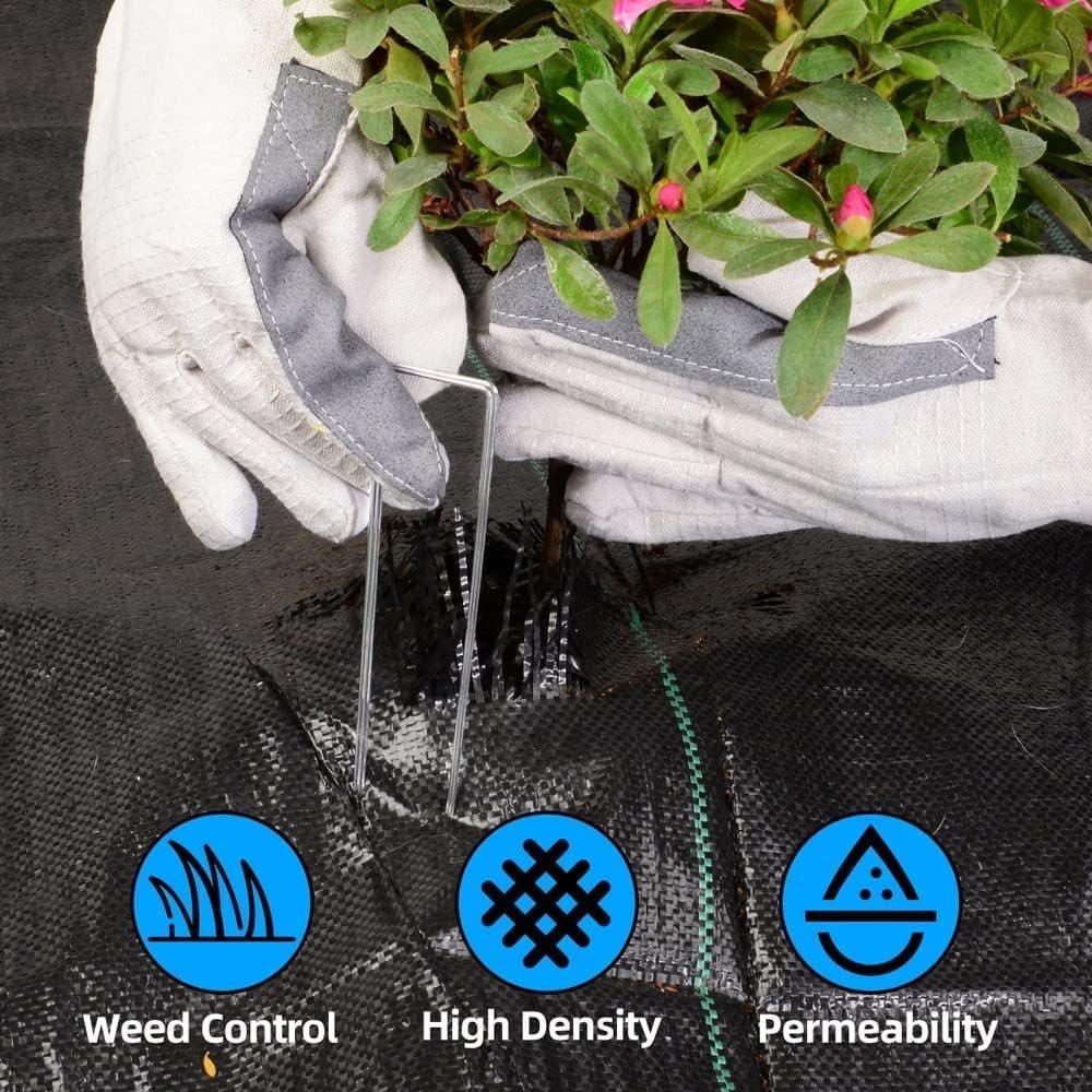 Professional Grade Weed Barrier: LAVEVE weed barrier fabric is made of woven polypropylene material. Its high-density and permeable characteristics effectively stop weed growth and protect soil health so your plants can grow well. 【Important Notice:Please note that NAILS are placed inside the product. Kindly open the weed barrier fabric to find them.】