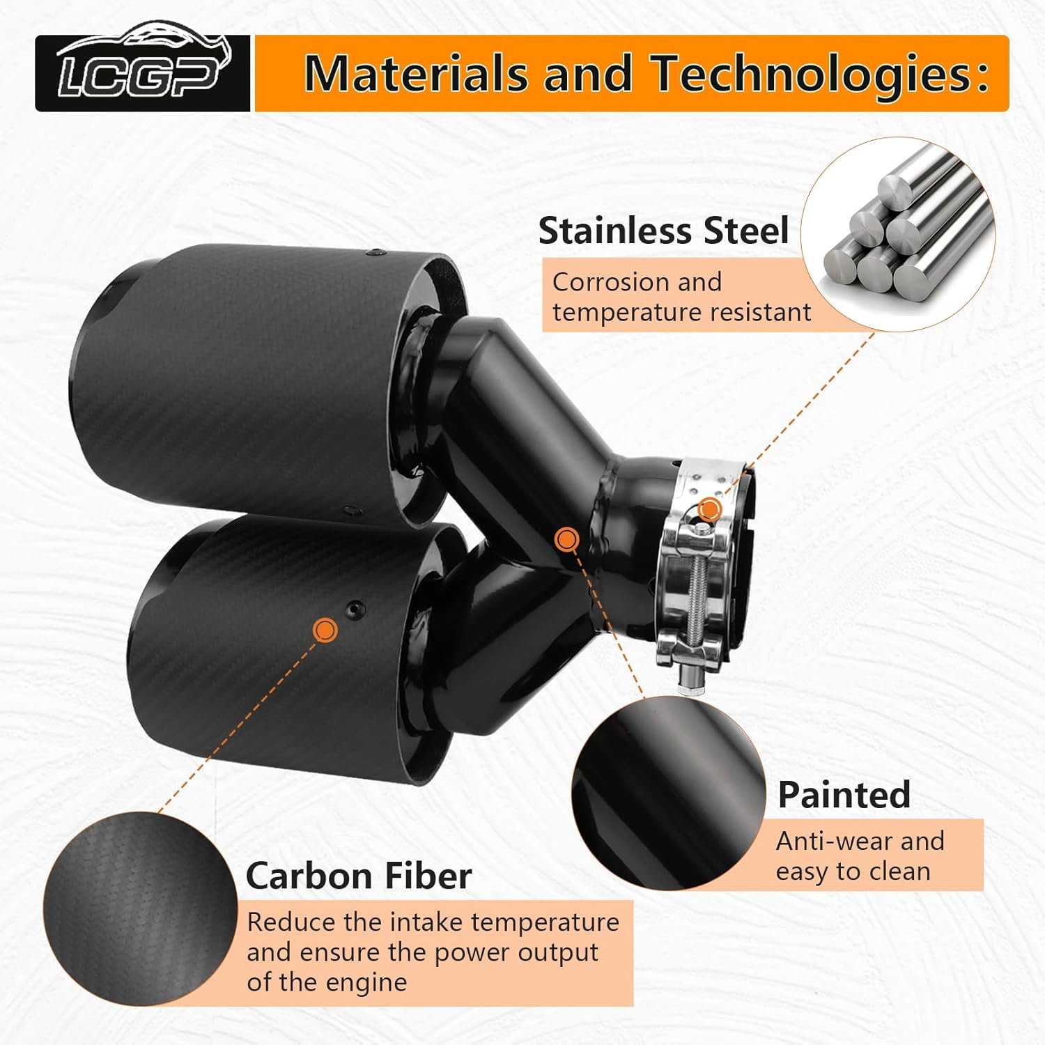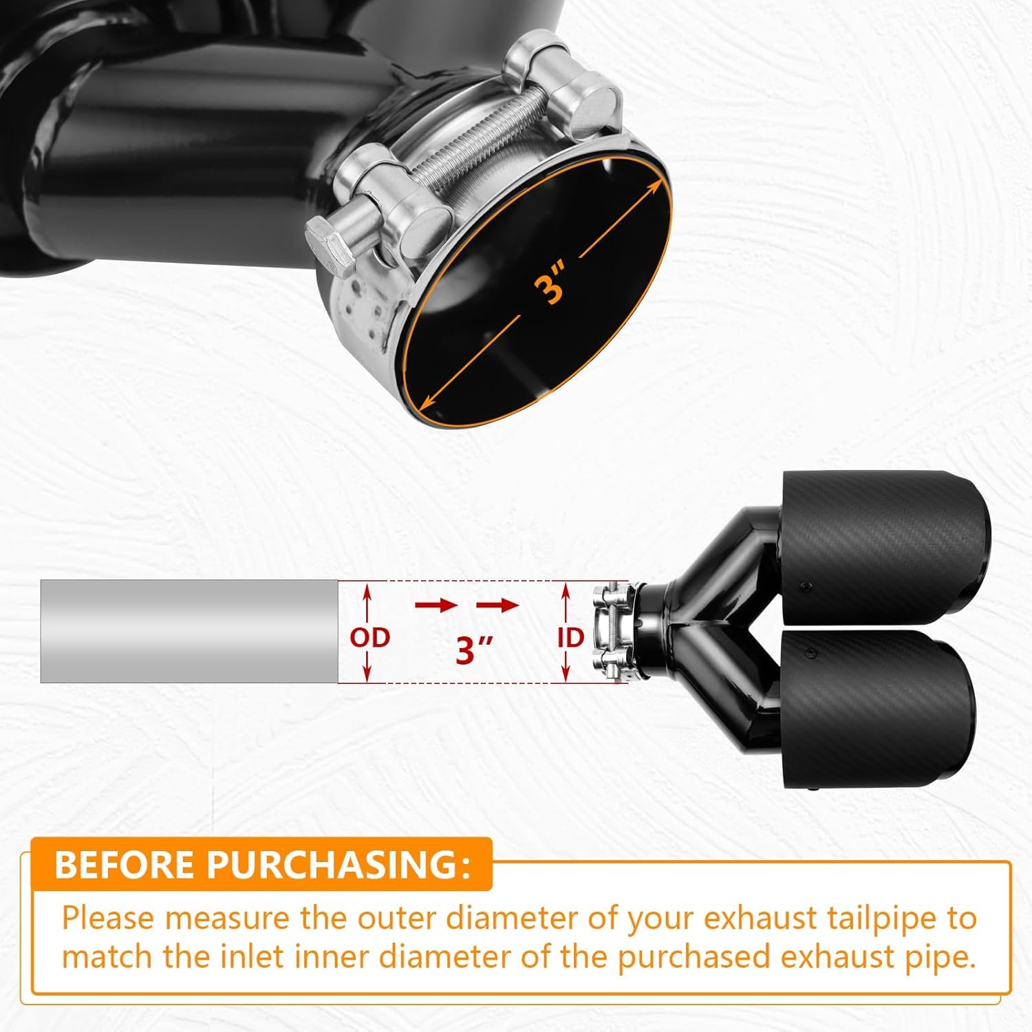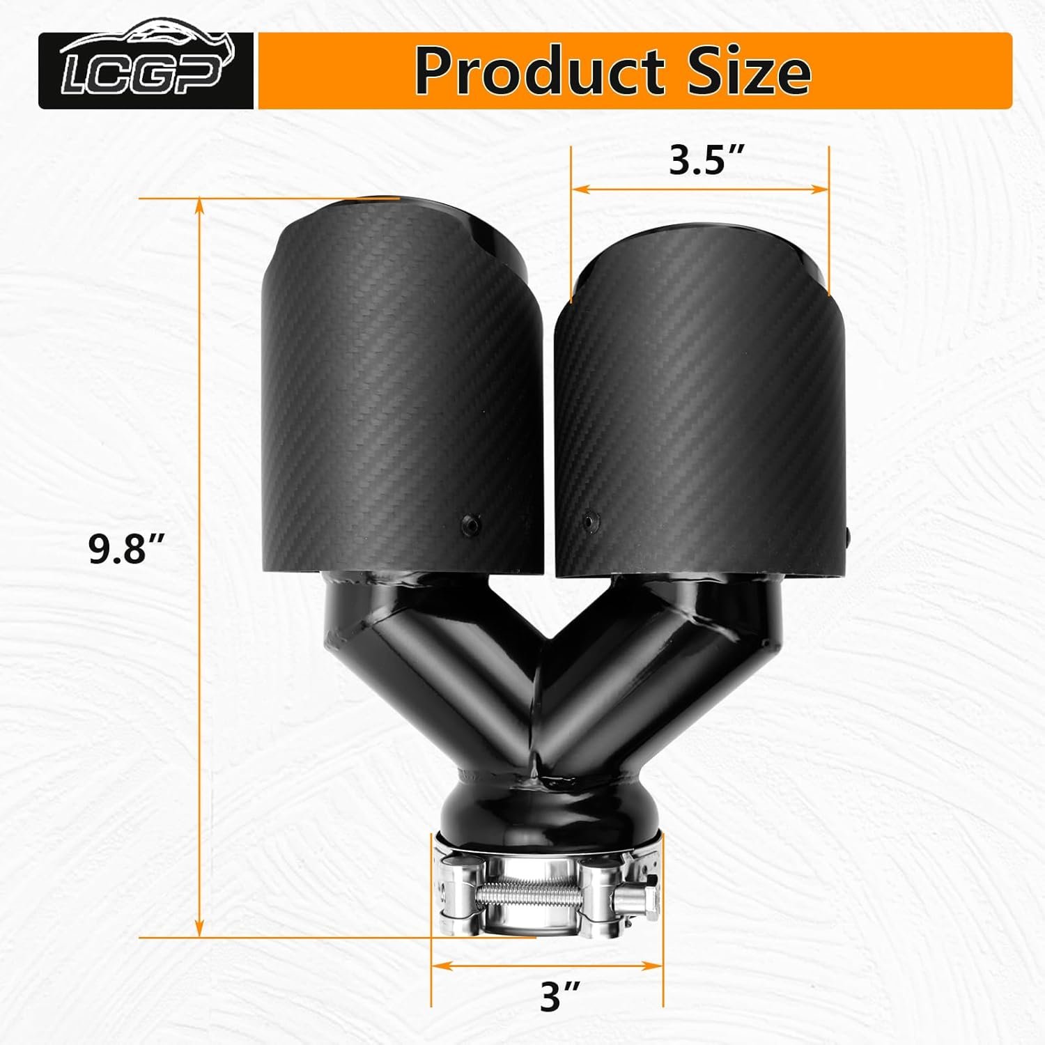 LCGP 2 Pack Carbon Fiber Exhaust Tip 3″ Inlet to Dual 3.5″ Outlet 9.8″ Long Black Stainless Steel Y Pipe Tailpipe tip